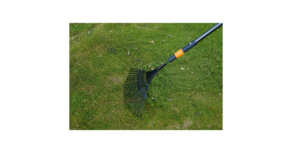 Der QuikFit Fächerbesen von Fiskars überzeugt mit Design und Funktion. Am besten benutzt man ihn zum Entfernen von losem Moos und Grasschnitt von Rasenflächen. Seine 20 Zinken sind aus stabilem Stahl gefertigt, was sie sehr langlebig macht. Die Breite des Fiskars QuikFit Fächerbesens beträgt 43 Zentimeter und ermöglicht es dem Benutzer, eine große Fläche mit nur einem Mal zu bearbeiten. Der Fächerrechen ist insgesamt 47 Zentimeter lang und wiegt dabei 445 Gramm. Es kann sowohl mit den Stielen als auch mit dem Handgriff der QuikFit-Reihe benutzt werden. Art.-Nr.: 1412534