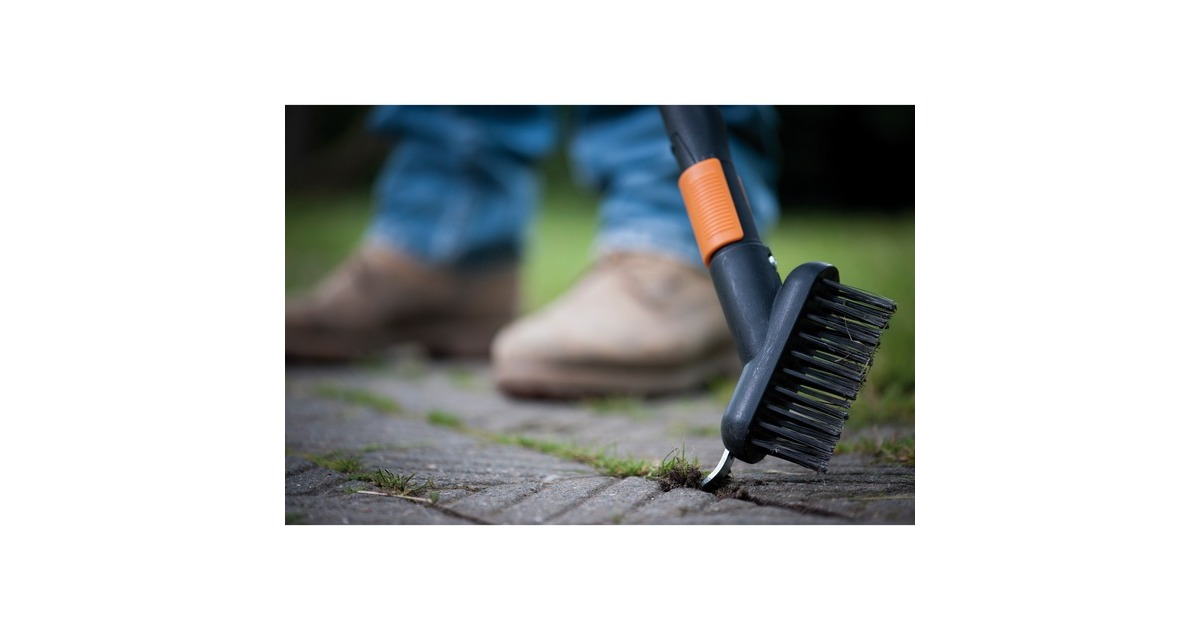 Sind die Plattenfugen und Mauerkanten nicht sehr dicht mit Unkraut oder Moos bewachsen, kann man zum Entfernen zur Fiskars QuikFit Fugenbürste greifen. Diese hilft dabei, die bewachsenen Stellen einfach vom Moos zu befreien. Um festsitzendes Moos oder festen Schmutz zu entfernen, kann auch die Kratz-Klinge benutzt werden, die zusätzlich am Gerät angebracht ist. Die Borsten der QuikFit Fugenbürste bestehen aus Stahl. Das Material sorgt für eine besonders gute Reinigungswirkung. Der Rahmen des Werkzeugs ist aus glasfaserverstärktem Kunststoff gefertigt. Dieses Material ist sehr stabil, langlebig und leicht. Das Produkt wiegt dadurch nur 160 Gramm. Die Länge der Bürste beträgt ca. 15 Zentimeter. Das Werkzeug kann an allen Stielen der QuikFit-Reihe montiert werden. Art.-Nr.: 1412570