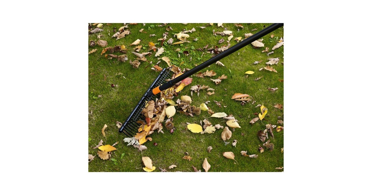 Beim QuikFit Rasenrechen von Fiskars handelt es sich um einen breiten Werkzeugkopf, der zum Säubern des Rasens benutzt werden kann. Der QuikFit Rasenrechen hat eine Breite von 57 Zentimetern. Er sammelt zuverlässig und unkompliziert alles, was nicht auf den Rasen gehört. Seine Zinken liegen so dicht beieinander, dass er Blätter und Rasenschnitt auf der Rasenfläche gründlich zusammenharkt. Der Rechen ist aus gehärtetem Karbonstahl gefertigt, was ihn besonders stabil und langlebig macht. Der Fiskars QuikFit Rasenrechen ist an jedem Stiel des QuikFit-Sortiments schnell und einfach montierbar. Art.-Nr.: 1412535