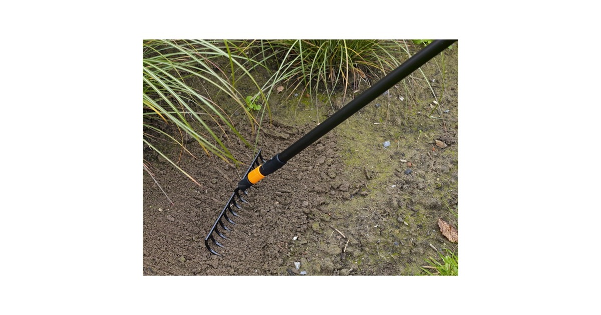 Gartenarbeit ist vielfältig und erfordert ein ebensolches Sortiment von Werkzeugen. Zu den Aufgaben bei der Gartenarbeit gehören zum Beispiel das Harken, Einebnen und Glätten von Beeten. Um diese Arbeit besonders gut ausführen zu können, eignet sich zum Beispiel der Fiskars QuikFit Rechen mit 14 Zinken. Die Zinken bestehen aus einem speziellen Material, aus gehärtetem und somit sehr stabilem Kohlenstoffstahl. Das Produkt hat eine Breite von 36 Zentimetern, was sehr praktisch ist, denn damit kann mit einem Mal eine größere Fläche bearbeitet werden. Die Gesamtlänge des QuikFit Rechens mit 14 Zinken von Fiskars misst 20,5 Zentimeter. Dabei wiegt das Werkzeug 428 Gramm und kann an jedem Stiel sowie am Handgriff des QuikFit-Sortiments montiert werden. Art.-Nr.: 1412546