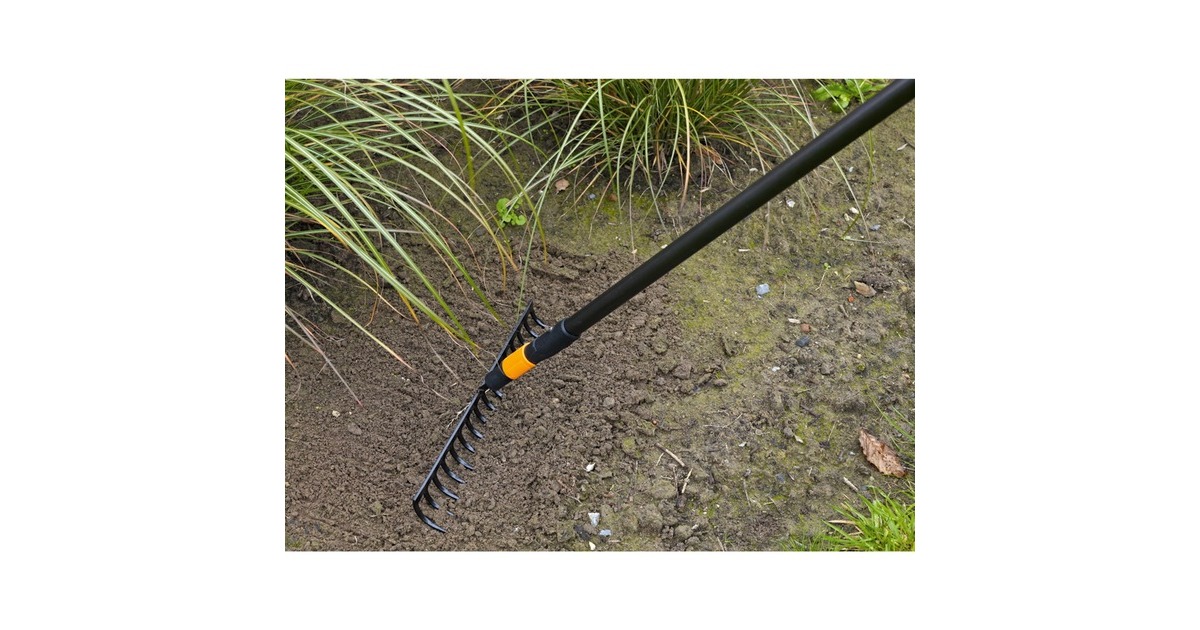 Beim QuikFit Rechen, 16 Zinken von Fiskars handelt es sich um ein praktisches Werkzeug, welches sich sehr gut zum Harken, Einebnen und Glätten von Beeten eignet. Der QuikFit Rechen mit 16 Zinken ist quasi der “große Bruder” des 14-Zinken-Modells. Dieser Rechen ist in der Breite um vier Zentimeter größer, ist also 40 Zentimeter breit, und wiegt 493 Gramm. Seine Zinken sind robust, wodurch der Gerätekopf langlebig ist. Bei dem Material handelt es sich um gehärteten Kohlenstoffstahl.Art.-Nr.: 1412547