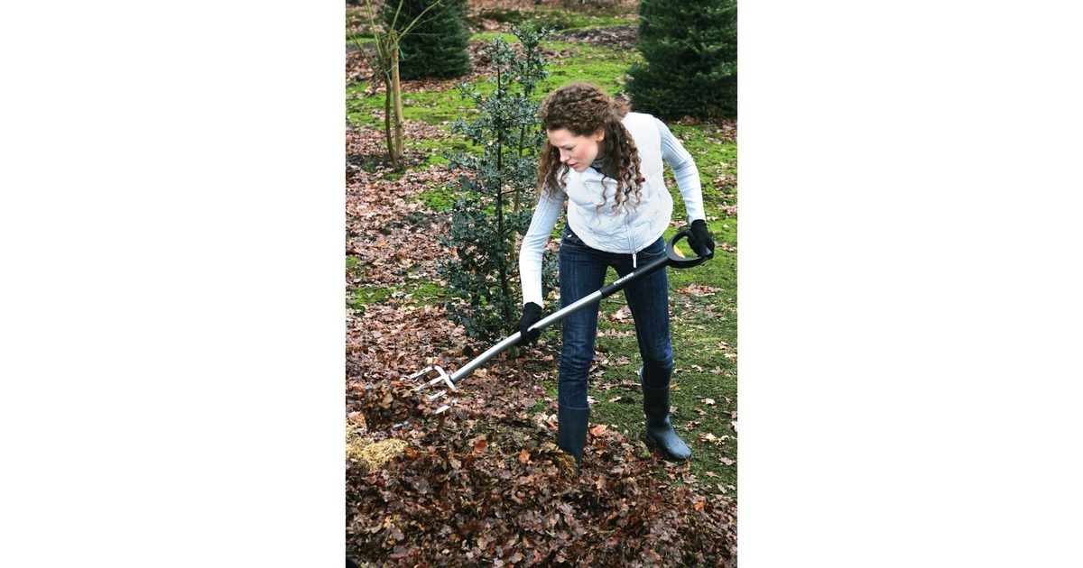 Schwere und steinige Böden lassen sich mit der Fiskars SmartFit Teleskop-Spatengabel besonders gut bearbeiten. Mit einem Gewicht von 1800 Gramm ist sie angenehm leicht. Das Gerät ist außerdem ergonomisch geformt, was wiederum eine komfortable Benutzung ermöglicht. Des Weiteren benötigt man weniger Kraftaufwand bei der Arbeit und schont damit die Gelenke. Dank des teleskopierbaren Stiels lässt sich die Arbeitshöhe der Teleskop-Spatengabel zwischen 105 und 125 Zentimetern einstellen. Damit kann für jede Körpergröße die optimale Höhe bestimmt werden. Dadurch kann der Benutzer des Geräts in aufrechter Körperhaltung ohne Ermüdungserscheinungen arbeiten. Die breiteste Stelle dieser Spatengabel misst 19 Zentimeter. Bei dem Material, welches zur Herstellung der Zinken des Geräts verwendet wurde, handelt es sich um langlebigen Borstahl. Das Ende des Stiels hat einen D-förmigen, schwarzen Griff. Art.-Nr.: 1412219