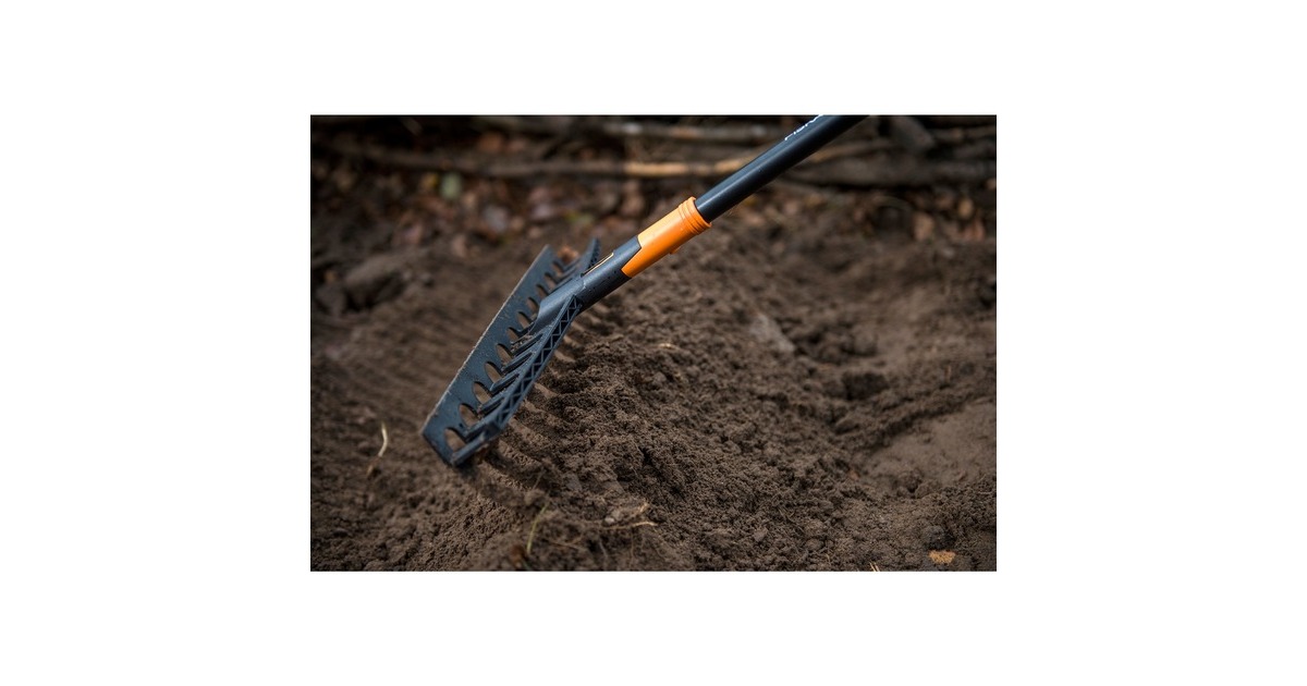 Der Solid Universal-Gartenrechen von Fiskars eignet sich perfekt zum Zusammenharken von losem Gras oder Ästen und zur Vorbereitung von Pflanzbeeten. Außerdem bietet er eine Nivellierfunktion zum Begradigen des Beets.Art.-Nr.: 1412311