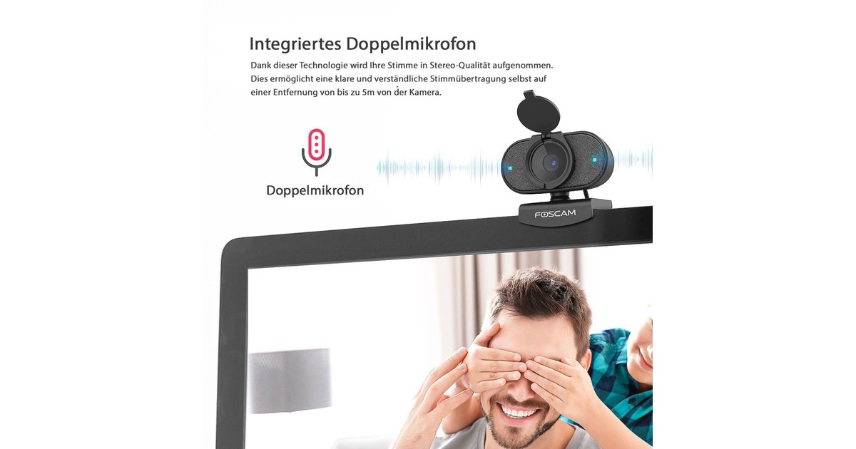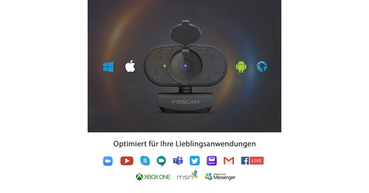 Die Foscam W41 Webcam mit 84°- Weitwinkelobjektiv nimmt hochauflösende Bilder und Videos in 2K (1520p) bei 25 Bildern pro Sekunde auf. Damit ist sie ideal zum Video-Streaming geeignet. Durch die zwei integrierten Mikrofone kann auch automatisch die Stimme in Stereoton aufgenommen werden. Perfekt für Videogespräche, Konferenzen, Online-Unterricht, Live-Streaming und mehr. Die Installation des Treibers ist einfach: Dazu muss die Webcam einfach nur per USB an einen Computer oder Laptop angeschlossen werden. Die W41 Webcam wird mit einer Abdeckung zum Schutz der Privatsphäre geliefert. Damit kann die Kamera verdeckt werden, solange sie nicht in Gebrauch ist, und verhindert dadurch, dass Hacker einen ausspionieren können. Die Webcam kann frei auf dem Tisch gestellt und auf einem Monitor oder Laptop befestigt werden. Sie kann für weitere Platzierungsmöglichkeiten auch mit einem zusätzlichen Stativ (nicht im Lieferumfang enthalten) verwendet werden. Die W41 funktioniert mit Skype, YouTube, Yahoo!@Messenger, MSN, Zoom, Windows Live@Messager, Gmail, WeChat und anderen Instant-Messaging-Anwendungen.Art.-Nr.: 1717835