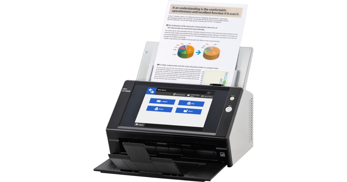 Der ScanSnap N7100e ist ein kompakt gebauter Einzugsscanner, mit dem Dokumente, Visitenkarten, geprägte Karten oder auch Quittungen einfach und schnell digitalisiert werden können. Gesteuert wird der N7100e komfortabel per Touchscreen. So wird auch die Bewältigung von großen Vorlagenmengen dank eines automatischen Einzugs mit einer Kapazität von bis zu 50 Blatt problemlos möglich. Der Scanner ist für eine Tagesleistung von bis zu 4000 Seiten ausgelegt. Über die integrierte LAN-Schnittstelle lässt sich dieser Einzugsscanner ganz einfach in ein Netzwerk integrieren. Das Gerät verfügt außerdem über USB-Ports an der Rückseite, über die für eine noch einfachere Bedienung Peripheriegeräte für Tastatur und Maus angeschlossen werden können.Art.-Nr.: 1665705