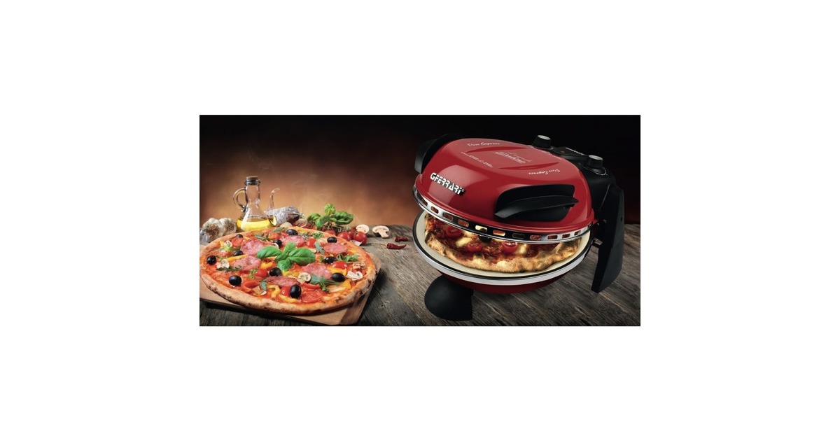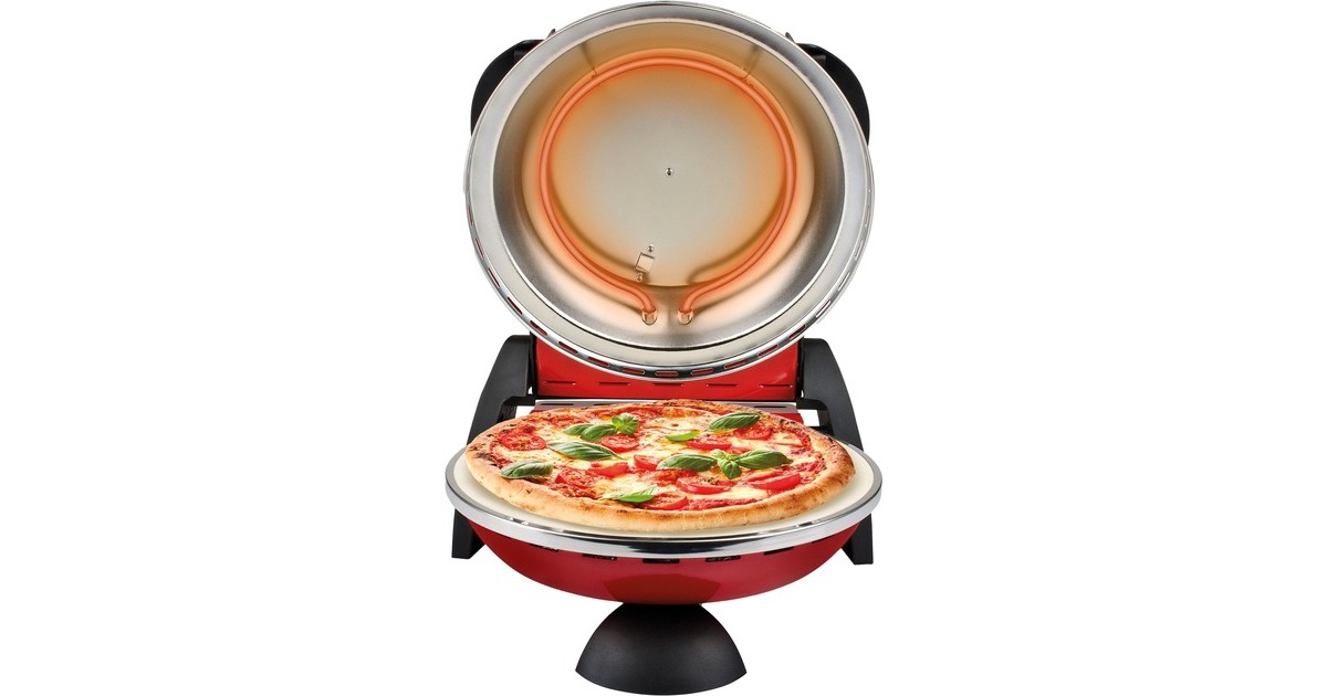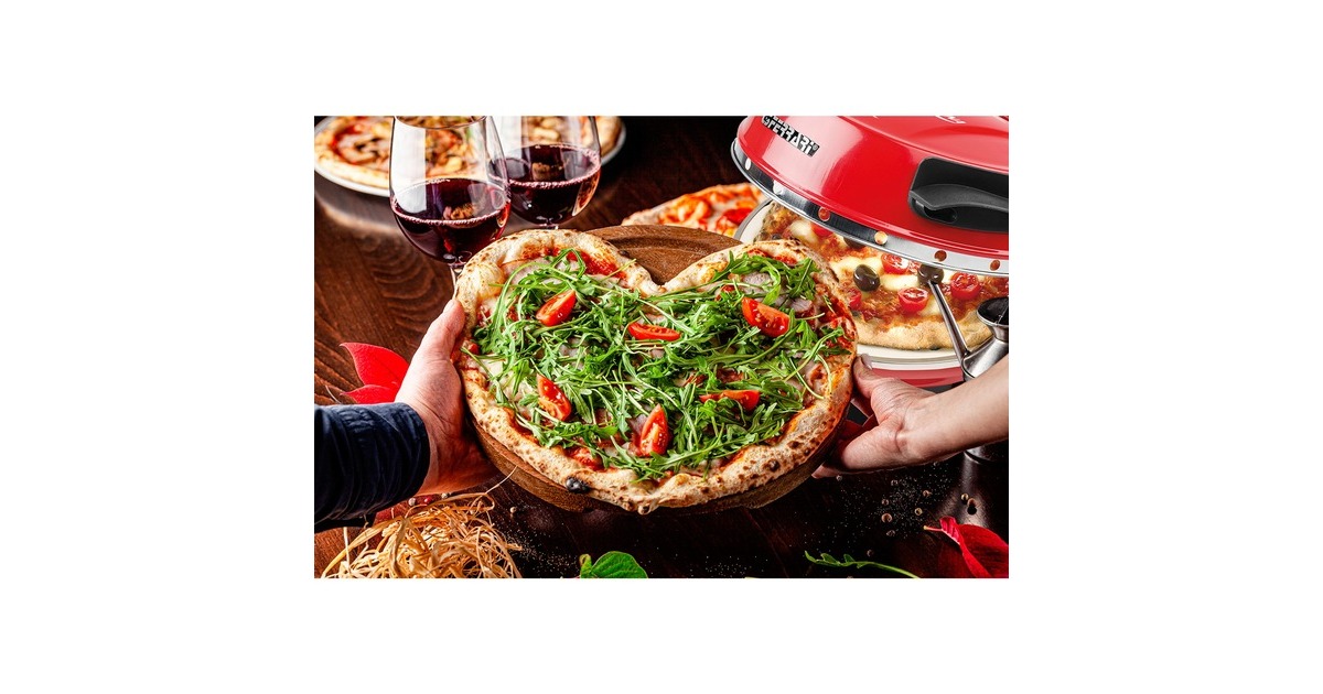 Mit dem elektrischen Pizzamaker Delizia von G3 Ferrari gelingen Pizzen zu Hause so einzigartig und knusprig wie aus dem Steinbackofen beim Italiener. Der G3 Ferrari Pizzaofen erreicht Temperaturen von bis zu 400 Grad, für perfekte Backergebnisse. Er eignet sich auch zum schnellen Aufwärmen und Aufbacken von frisch duftendem Brot, Croissants und Baguette. Blitzschnell in nur ca. 5 Minuten ist selbstgemachte Pizza servierbereit, Tiefkühlpizza in ca. 3 Minuten. Durch das Backen mit dem feuerfesten, lebensmittelechten Naturstein wird die Feuchtigkeit des Teiges absorbiert und die Hitze im Stein gespeichert und gleichmäßig an den Teig abgegeben. Das Ergebnis ist ein besonders gleichmäßig knuspriger Boden, lecker und kross. Der Pizzaofen Delizia bietet vielfältige Möglichkeiten, morgens, mittags und abends: Leckere warme Brötchen oder Toast am Morgen, frische Burritos oder Wraps zu Mittag, krosse neapolitanische Pizza, Fladen, Lahmacun oder Flammkuchen zum Feierabend. Dabei ist der Pizzaofen praktisch, einfach in der Bedienung und so kompakt, dass er einfach mitgenommen werden kann, zum Geburtstag, Filmevent, Fußballspiel, Mädelsabend, Camping, nettes Zusammensein oder als Geschenkidee. Durch das ansprechende Design und die vielen erhältlichen Farben ist der Pizzaofen ein Blickfang für jede Küche.Art.-Nr.: 1019457