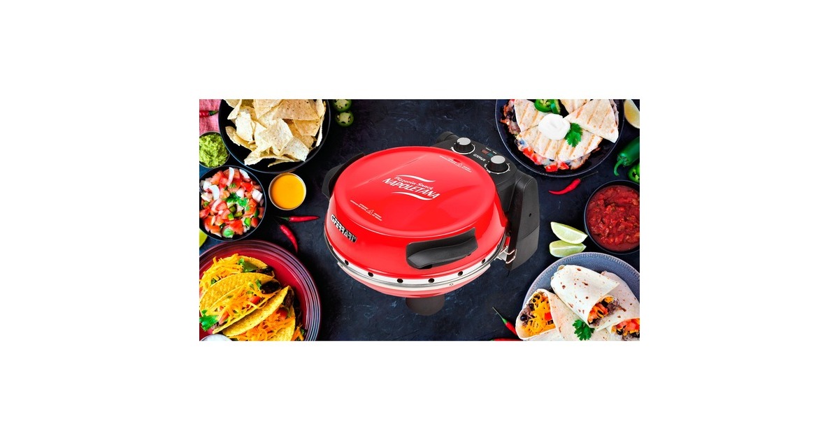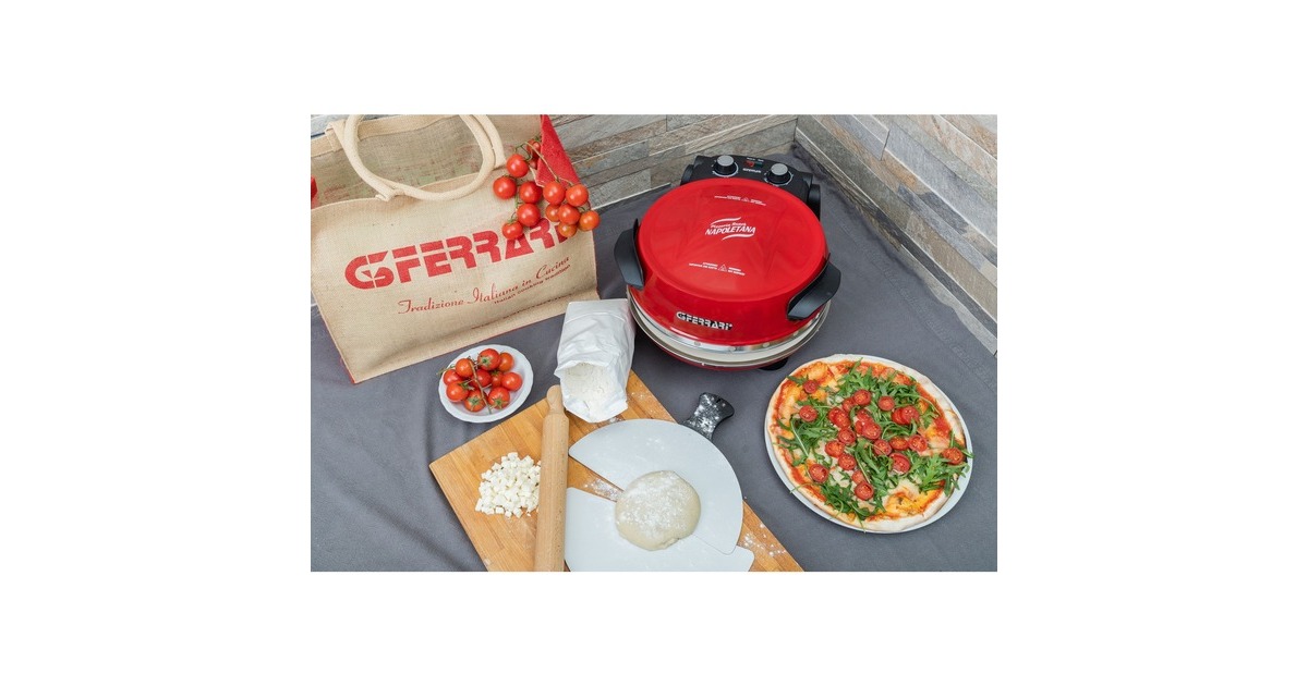 Mit dem elektrischen Pizzamaker Napoletana von G3 Ferrari gelingen Pizzen zu Hause so einzigartig und knusprig wie aus dem Steinbackofen beim Italiener. Der G3 Ferrari Pizzamaker erreicht Temperaturen von bis zu 400 Grad, für perfekte Backergebnisse so arbeiten Profis. Er eignet sich auch zum schnellen Aufwärmen und Aufbacken von frisch duftendem Brot, Croissants und Baguette. Blitzschnell in nur ca. 5 Minuten ist selbstgemachte Pizza servierbereit, Tiefkühlpizza auch in ca. 3 Minuten. Das regelbare Thermostat bietet Temperaturen von bis zu 400°C, sodass die Soße nicht austrocknet und ein Ergebnis erzielt wird, wie bei den traditionellen italienischen Pizzen. Dank des Systems mit zwei feuerfesten Steinen (Durchmesser 31cm) können mit dem Napoletana außerdem auch Sandwiches, Focaccia, Tigelle und ähnliche Speisen zubereitet werden. Die Hitze wird im Stein gespeichert und gleichmäßig an den Teig abgegeben, das Ergebnis ist ein besonders gleichmäßig knuspriger Boden, lecker und kross. Dabei ist der Pizzamaker praktisch, einfach in der Bedienung und kompakt, so kann er einfach mitgenommen werden, egal, ob zum Geburtstag, Filmevent, Fußballspiel, Mädelsabend, Camping, nettes Zusammensein oder als Geschenkeventidee. Durch das ansprechende Design ist der Pizzaofen ist ein Blickfang für jede Küche.Art.-Nr.: 1269679