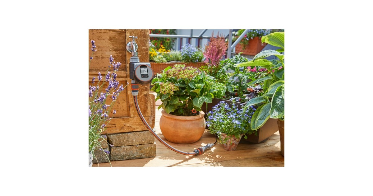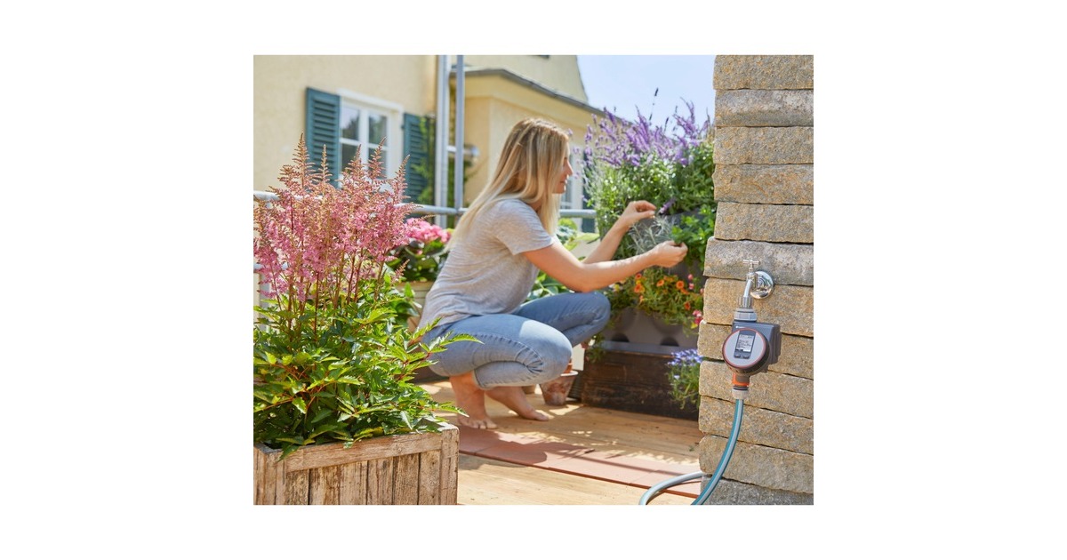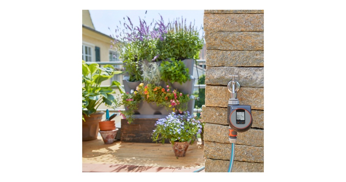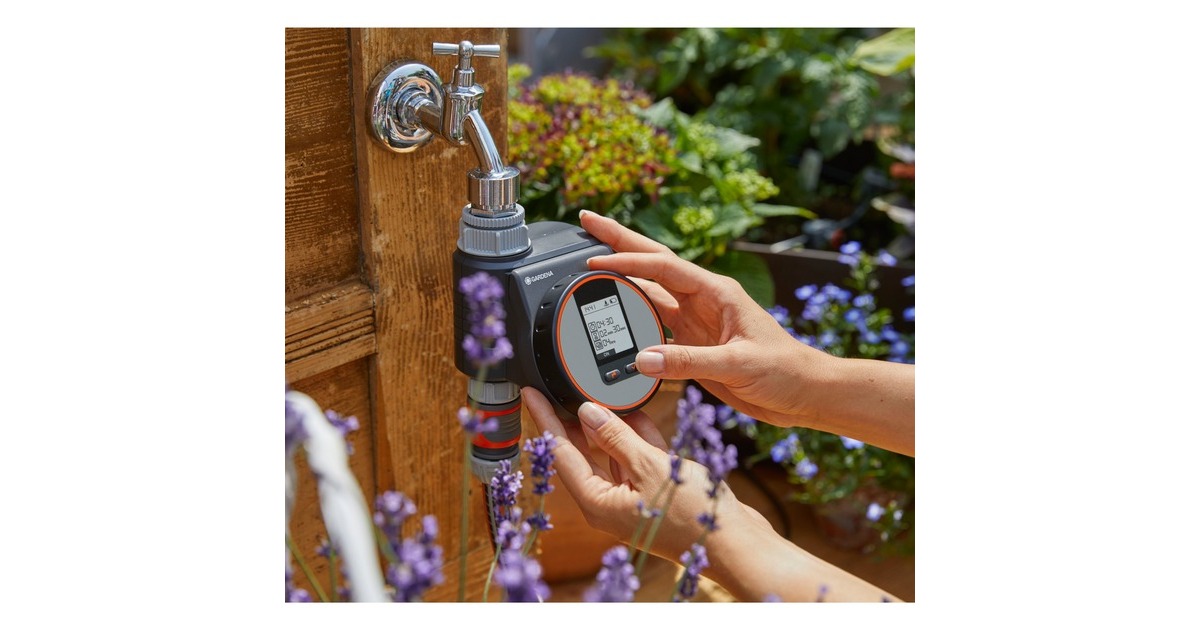 Die GARDENA Bewässerungssteuerung Flex entlastet bei der Gartenbewässerung, z.B. beim Betrieb von Regnern, dem GARDENA Sprinklersystem und erlaubt auch kurze, im Sekundentakt einstellbare Bewässerungszyklen zur Bewässerung von Topfpflanzen, ideal mit dem GARDENA Micro-Drip-System. Der Bewässerungscomputer wird direkt an den Wasserhahn angeschlossen und steuert die Bewässerung zuverlässig zur eingestellten Zeit und Dauer. Damit muss man weder im Alltag noch während des Urlaubs ans Gießen denken, weil alles automatisch nach den eigenen Wünschen läuft. Das Bedienteil lässt sich abnehmen, um es bequem zu programmieren. Auf dem übersichtlichen LCD-Display werden die ausgewählten Einstellungen angezeigt. Das Programmieren ist selbsterklärend und geht ganz leicht. Per Drehknopf und Tasteneingabe wählt man Bewässerungsstart, -dauer auf die Sekunde genau und -frequenz. Danach steckt man das Bedienteil wieder an. Hat man einmal die Vorgaben eingestellt, steuert der Computer das Gießen automatisch nach den eigenen Wünschen. Die Funktion "Sofort Bewässern" ermöglicht eine manuelle Bewässerung oder das Befüllen eines Eimers ohne Abschrauben der Bewässerungssteuerung und stoppt automatisch wieder nach vorgegebener Dauer. Außerdem ist die Bewässerungssteuerung Flex sensorfähig, ein angeschlossener Sensor (separat erhältlich) misst die Bodenfeuchte und unterbricht den Zeitplan, wenn es zum Gießen zu nass ist. Die Bewässerungssteuerung funktioniert durch die "Safe Stop" Technologie immer zuverlässig. Ist der Energiestand der Batterie zu gering, um einen Bewässerungsvorgang komplett zu steuern, wird er gar nicht erst gestartet. Die Batterieanzeige im Display weist zudem rechtzeitig darauf hin, wenn die Batterie ausgetauscht werden muss. Mit einer 9 V Alkaline Batterie (nicht im Lieferumfang enthalten) funktioniert die Bewässerungssteuerung Flex zuverlässig ca. ein Jahr lang.Art.-Nr.: 1491786