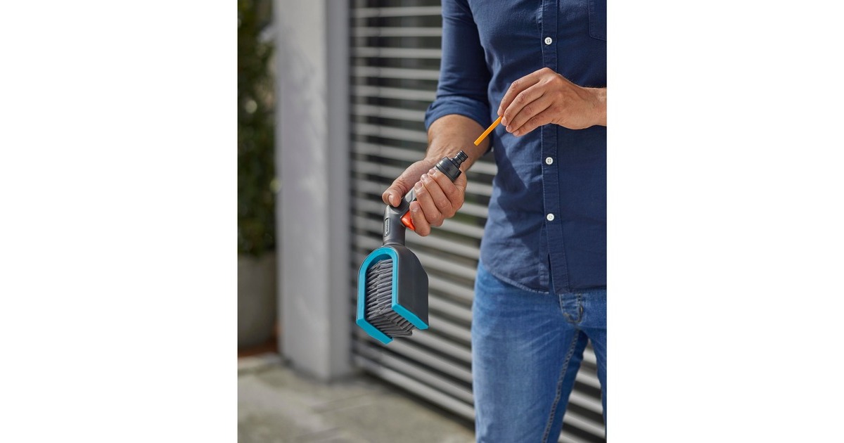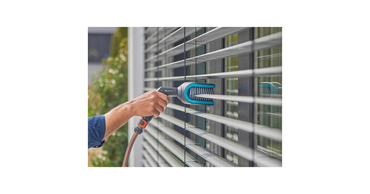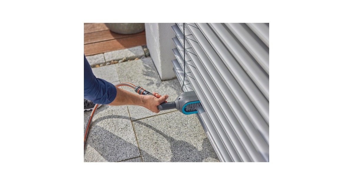 Die Cleansystem Jalousienbürste von GARDENA befreit dank der Form und Anordnung der Borsten Jalousien mit C- oder Z-Lamellen im Außenbereich spielend leicht von Staub und Schmutz. Die Borsten umfassen die Lamellen, Wasser von der Ober- und Unterseite sorgt für eine gründliche Reinigung in einem Arbeitsgang. Der Bürstenkopf lässt sich beidseitig um 90° drehen, so können auch tiefer liegende Lamellen noch bequem gereinigt werden. Das GARDENA Cleansystem ist die ideale Lösung für alle Reinigungsaufgaben rund um Haus und Garten. Das wasserführende Reinigungssystem mit dem Original GARDENA System-Anschluss ist vielseitig kombinierbar. Es besteht aus verschiedenen Handbürsten für den Einsatz auf kleineren Flächen und Stielen mit passenden Vorsatzgeräten, wenn mehr Reichweite benötigt wird oder die zu reinigende Fläche größer ist. Die Nasspflege kann mit klarem Wasser oder unter Zusatz von GARDENA Reinigungstabs oder GARDENA Seifenstäbchen erledigt werden.Art.-Nr.: 100025449