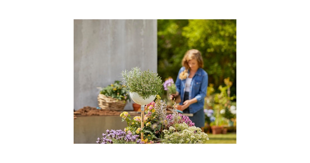 Für einen Garten mit himmlischen Blüten müssen Gartenbesitzer ab dem Frühjahr einfach die GARDENA ClickUp! Pflanzschale auf den Stiel aufsetzen und bepflanzen. Schon entstehen blütenreiche Akzente im Garten. Angepflanzte Kräuter oder Erdbeeren können dank der Erhöhung ganz einfach ohne Bücken vom Strauch gezupft und direkt verzehrt werden. Zudem wird das kleine Beet durch die Höhe vor ungewünschten Schädlingen wie Schnecken oder Mäusen geschützt. Die Pflanzschale hat einen Durchmesser von 25cm und bietet damit mittelgroßen Pflanzen oder 2 bis 3 kleineren Pflanzen genügend Platz, um sich in ihrer vollen Blüte zu zeigen. Die GARDENA ClickUp! Pflanzschale ist mit einem Wasserablauf und einem Tropfrand ausgestattet, damit kein Wasser den Stiel entlangläuft. Sie ist zur Verwendung mit dem GARDENA ClickUp! Stiel vorgesehen, auf dem sie sich mit einem Klick wackelfrei befestigen lässt. Sie ist aus hochwertigem Acrylglas gefertigt, leicht zu reinigen und frostsicher.Art.-Nr.: 1687400