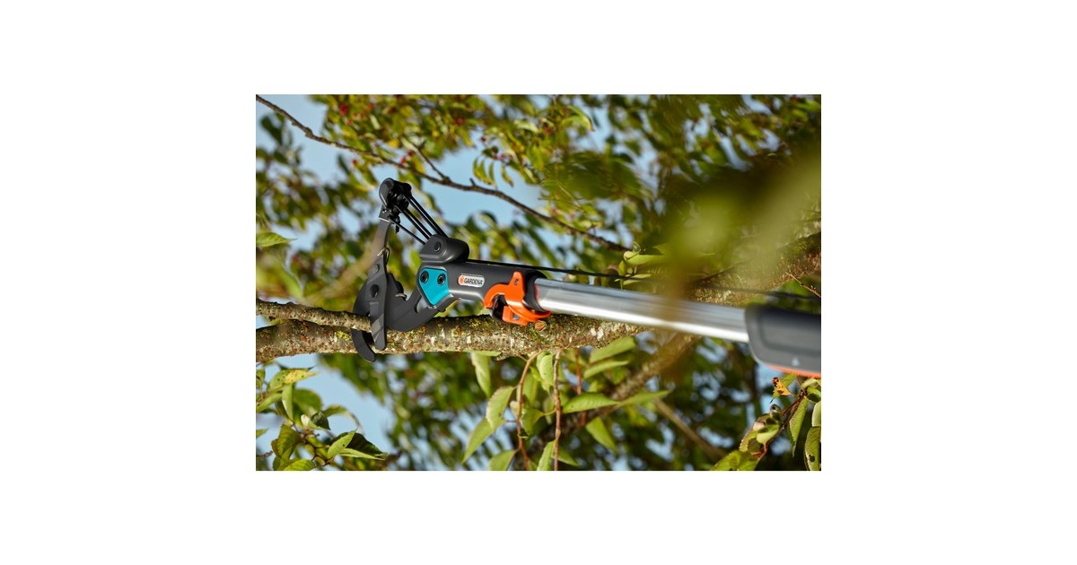 Die GARDENA combisystem Bypass-Baumschere mit 5-fach Rollenübersetzung ist ideal geeignet für das Schneiden von frischen Ästen in hohen Bäumen. In Kombination mit einem GARDENA combisystem Teleskopstiel können so Äste bequem vom Boden aus ohne Leiter bis in großer Höhe gekürzt werden. Die antihaftbeschichteten Messer mit einer speziellen Messergeometrie für eine Fixierung des Astes (kann sich nicht bewegen während des Schneidens) ermöglichen einen sauberen und exakten Schnitt sowie eine leichte Reinigung. Dank des einstellbaren D-Griffs ist eine kraftvolle, komfortable und ergonomische Bedienung möglich. Der D-Griff hat eine Seilaufwicklung mit Fixierung für die Seilenden an beiden Seiten, damit es sich während der Arbeit und bei der Lagerung nicht verknoten kann. Art.-Nr.: 1252381