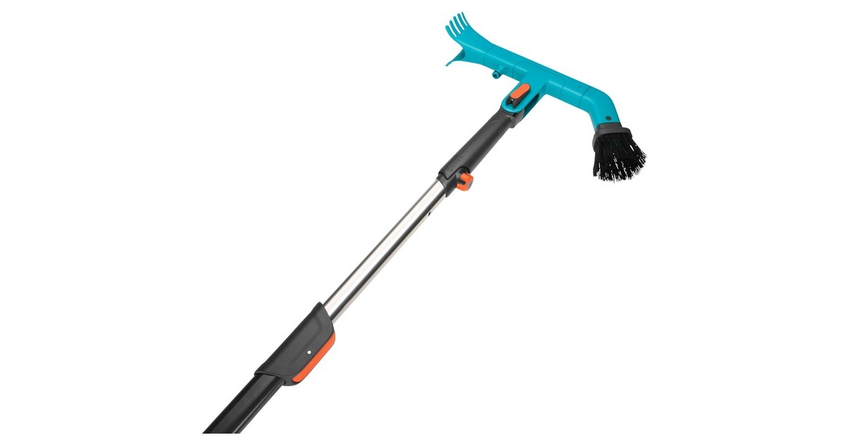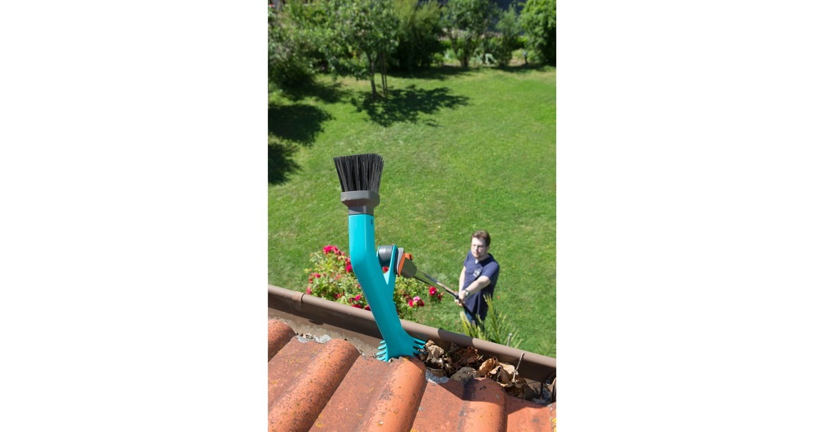 Der GARDENA combisystem-Dachrinnenreiniger (3651-30) eignet sich optimal zum Säubern und Ausräumen von Dachrinnen im Herbst. Zwei stabile Kunststoff-Schaber sorgen für die effiziente Entfernung von grobem Schmutz und Blättern, mit der Bürstenseite und angeschlossenem Gartenschlauch lassen sich anschließend auch letzte Schmutzreste gründlich abwaschen. Der Arbeitswinkel lässt sich individuell per Schnellverschluss einstellen. Der combisystem-Dachrinnenreiniger kann mit dem Handgriff auch ohne combisystem-Stiel eingesetzt werden. Art.-Nr.: 1394533