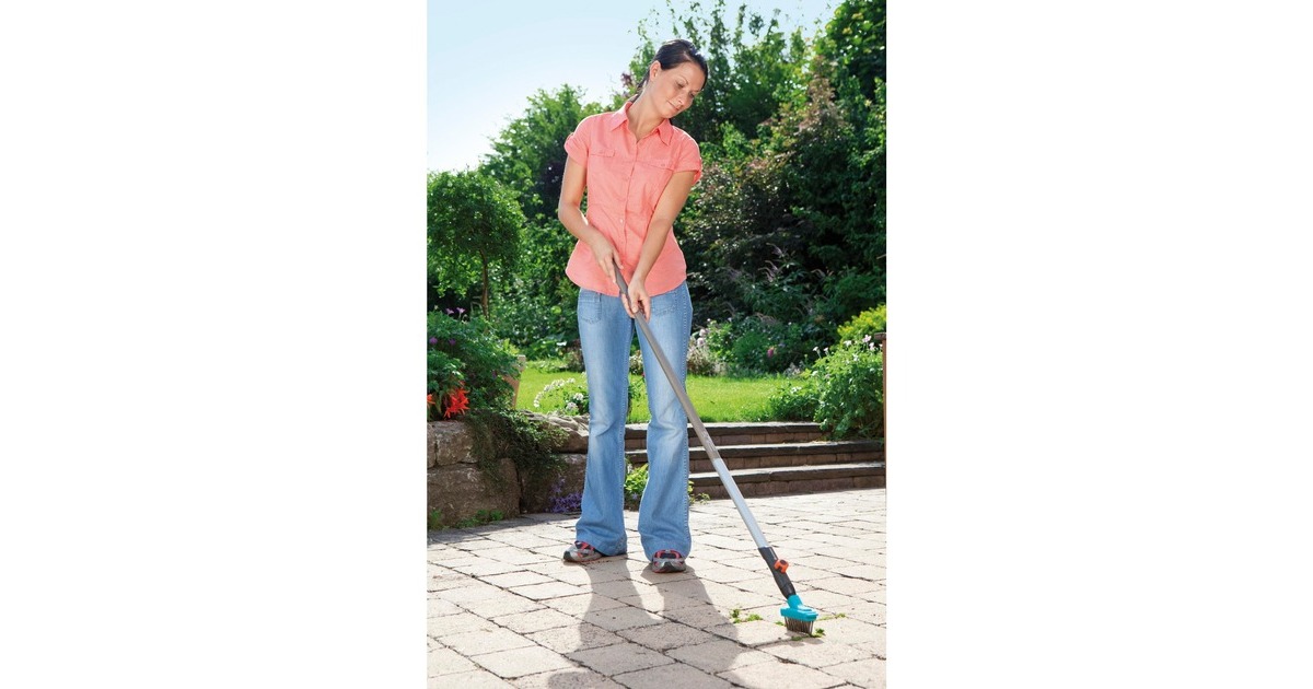 Zum Entfernen von Moos in Plattenfugen und Mauerkanten |