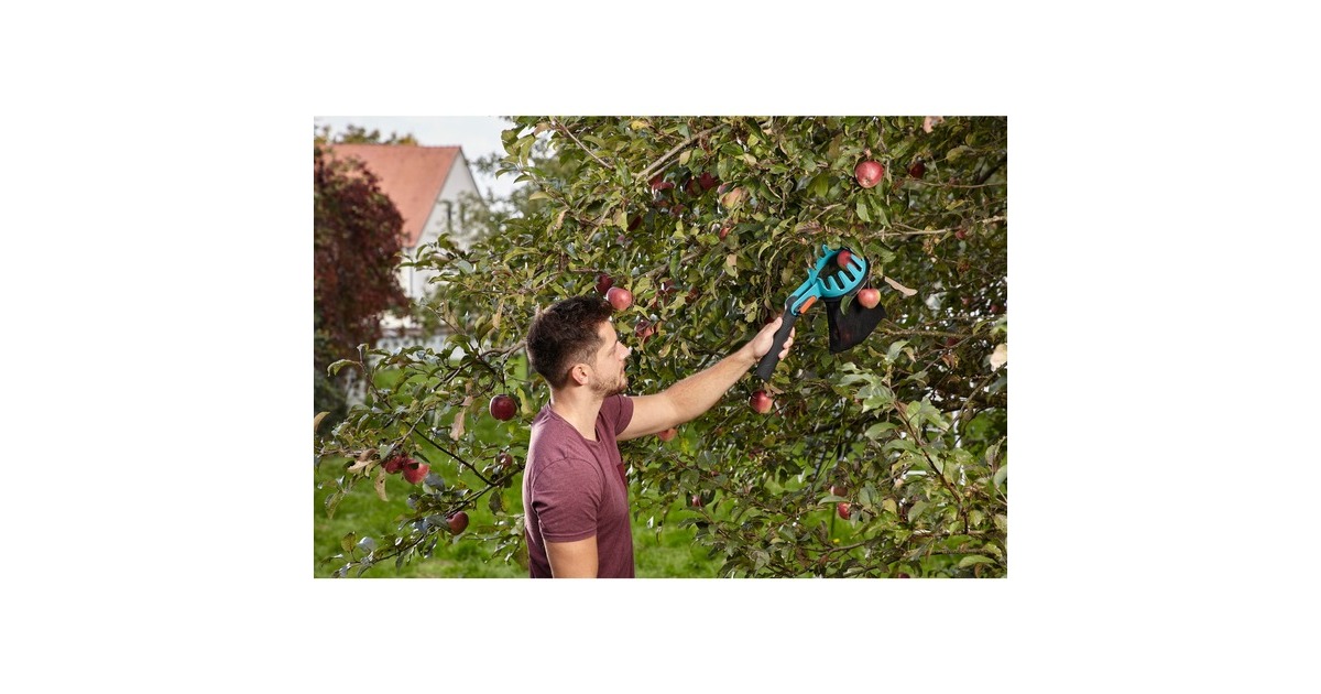 Der GARDENA combisystem-Obstpflücker (3115-20) eignet sich optimal zum Pflücken von Obst direkt vom Baum. In dem waschbaren Fangbeutel aus Netzmaterial lassen sich die Früchte einfach sammeln. Um alle Stellen am Baum bequem zu erreichen und ein einfaches Sammeln zu ermöglichen, kann der Arbeitswinkel des GARDENA combisystem-Obstpflücker dank eines stufenlos verstellbaren Gelenknippels individuell angepasst werden. Der Obstpflücker passt zu allen GARDENA combisystem-Stielen, wobei GARDENA für ein Arbeiten in Höhen bis ca. 5 Meter den Teleskopstiel empfiehlt. Der Obstpflücker 3115-20 kann mit dem Handgriff auch ohne combisystem-Stiel eingesetzt werden. Art.-Nr.: 1394545