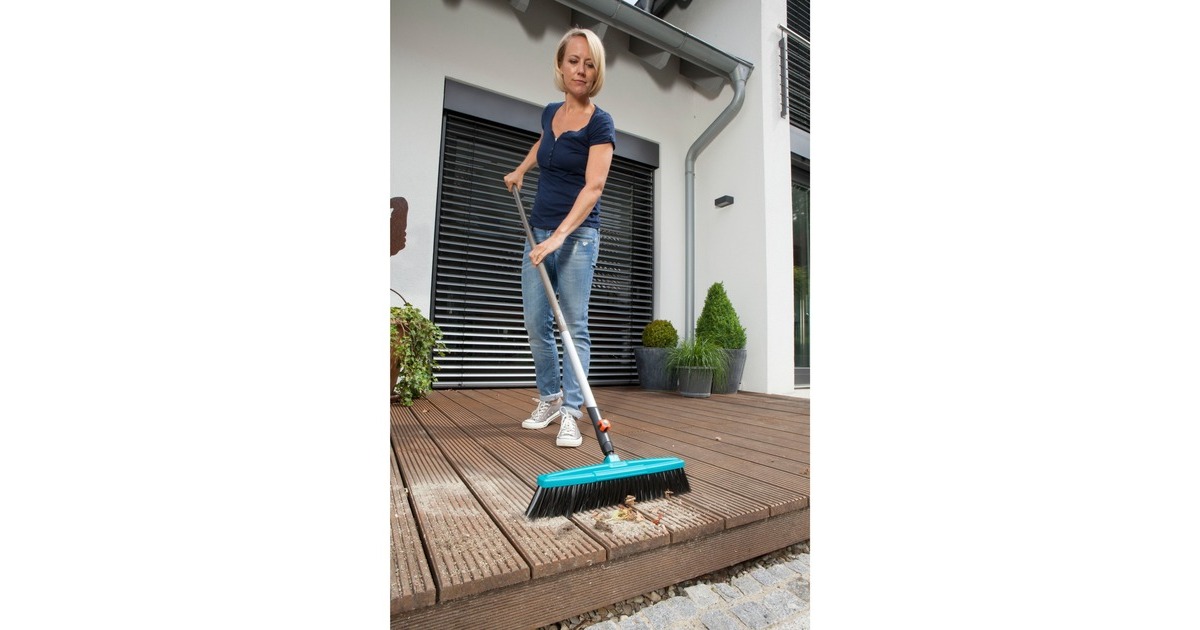 Das GARDENA combisystem-Straßenbesen Komplettset, bestehend aus dem combisystem-Straßenbesen 3622-30 und dem Holzstiel 130cm (3723), ist optimale für den Einsatz im Garten und für die Wege rund ums Haus. Mit einer Arbeitsbreite von 45cm und mit einem schlagfesten Gehäuse aus hochwertigem Kunststoff ist der robuste Besen vielseitig einsetzbar. Für Beständigkeit sorgen hochwertige und geschmeidige Borsten aus Polypropylen. Die integrierte Kratzkante ermöglicht müheloses entfernen von festgetretenem Schmutz oder feuchtem Laub. Der taillierte 130 cm lange Stiel ist abrutschsicher und liegt gut in der Hand. Ein durchgängig eloxiertes Aluminiumrohr wird am Stielende von Kunststoff ummantelt und ermöglicht eine stabile Aufnahme und einen sicheren Halt des combisystem-Gerätes. Das hochwertige, elastische Eschenholz aus Europa dämpft Vibrationen und ist FSC-zertifiziert. Die FSC Zertifizierung besagt, dass zur Herstellung der Stiele ausschließlich Hölzer aus nachhaltiger Forstwirtschaft verwendet werden.Art.-Nr.: 1252545