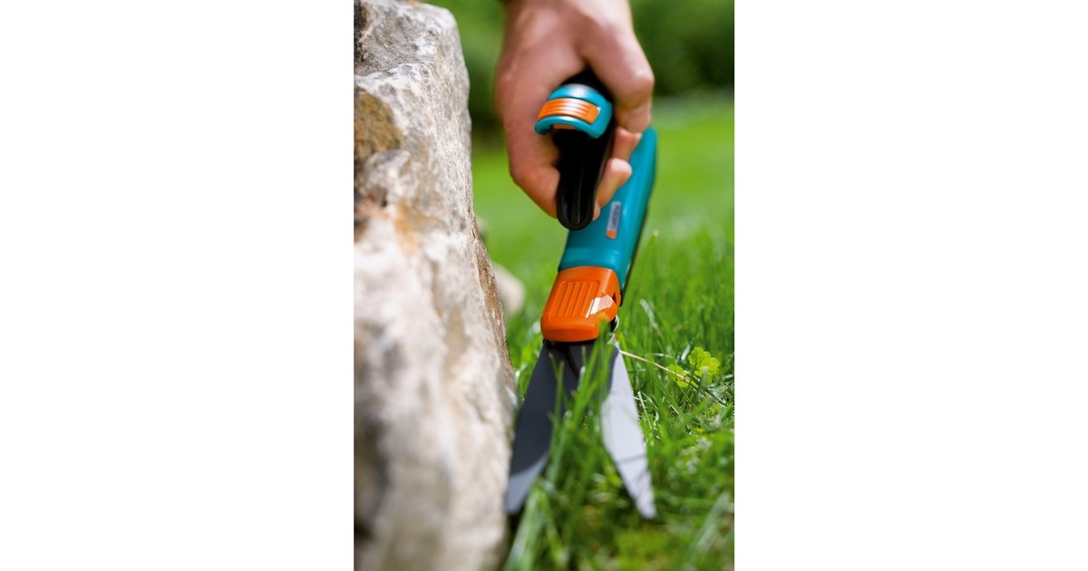 Mit der drehbaren GARDENA Comfort Grasschere gestaltet sich der exakte Rasenkantenschnitt dank der antihaftbeschichteten Wellenschliff-Schneidemesser spielend. Die Spezial-Griffform mit patentierter, optimaler Krafteinleitung ermöglicht einen extra leichten Schnitt der Rasenkanten und beste Ergonomie in jeder Situation. Besonders bei schwer erreichbaren Stellen im Garten sind die um 360° drehbaren Schneiden ideal. Die GARDENA Comfort Grasschere ist sowohl für Links- als auch für Rechtshänder geeignet. Ein ergonomisch geformter Griff mit Weichkunststoff-Komponente sowie eine Gleitkufe gewährleisten eine leichte Führung während die spezielle Messerlagerung stets kraftvolles Schneiden bei gleichbleibender Schnitthöhe ermöglicht. Durch einen praktischen Einhand-Sicherheitsverschluss kann die GARDENA Comfort Grasschere schnell und einfach geschlossen werden.Art.-Nr.: 1464772