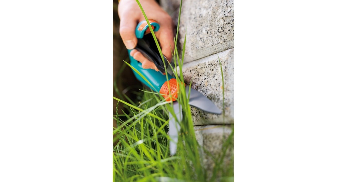 Mit der drehbaren GARDENA Comfort Grasschere gestaltet sich der exakte Rasenkantenschnitt dank der antihaftbeschichteten Wellenschliff-Schneidemesser spielend. Die Spezial-Griffform mit patentierter, optimaler Krafteinleitung ermöglicht einen extra leichten Schnitt der Rasenkanten und beste Ergonomie in jeder Situation. Besonders bei schwer erreichbaren Stellen im Garten sind die um 360° drehbaren Schneiden ideal. Die GARDENA Comfort Grasschere ist sowohl für Links- als auch für Rechtshänder geeignet. Ein ergonomisch geformter Griff mit Weichkunststoff-Komponente sowie eine Gleitkufe gewährleisten eine leichte Führung während die spezielle Messerlagerung stets kraftvolles Schneiden bei gleichbleibender Schnitthöhe ermöglicht. Durch einen praktischen Einhand-Sicherheitsverschluss kann die GARDENA Comfort Grasschere schnell und einfach geschlossen werden.Art.-Nr.: 1213972