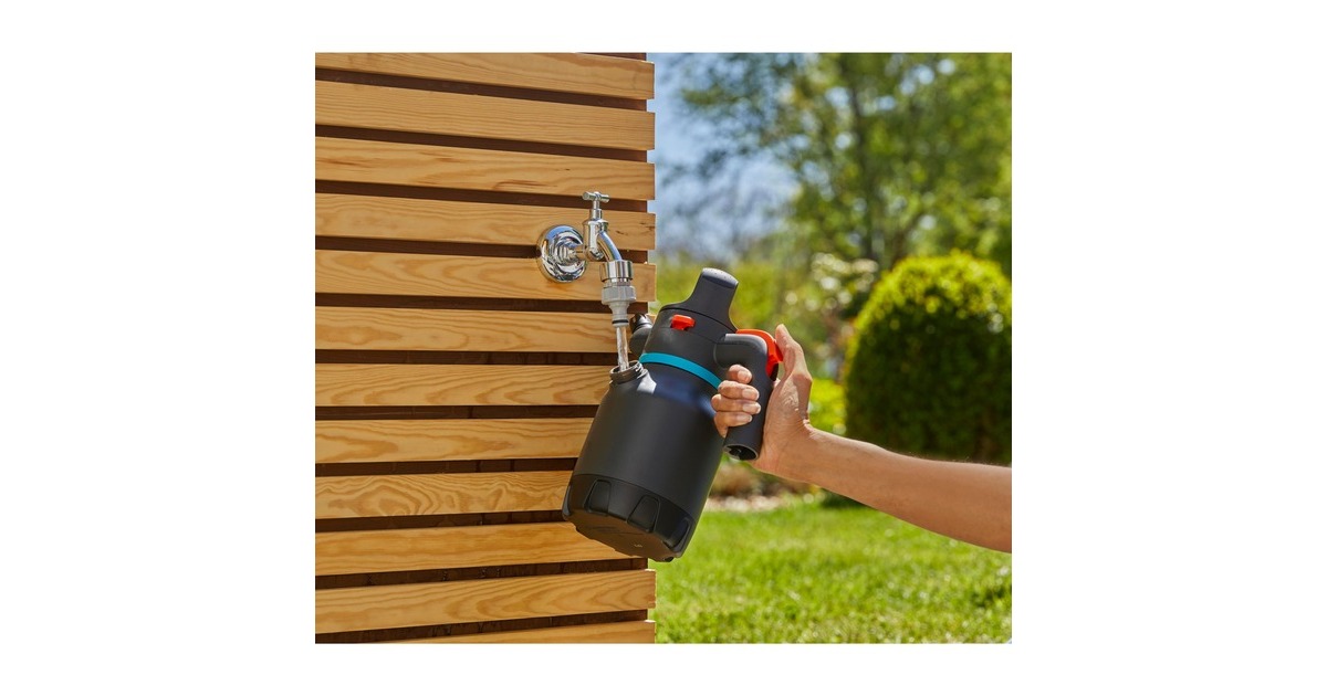 Druckabbau auf Knopfdruck, ohne den Sprüher aufschrauben zu müssen, einstellbare Sprühdüse: Sprühwinkel nach oben und unten abwinkelbar, Drehung im Uhrzeigersinn: Sprühnebel, Drehung gegen den Uhrzeigersinn: Stechstrahl |