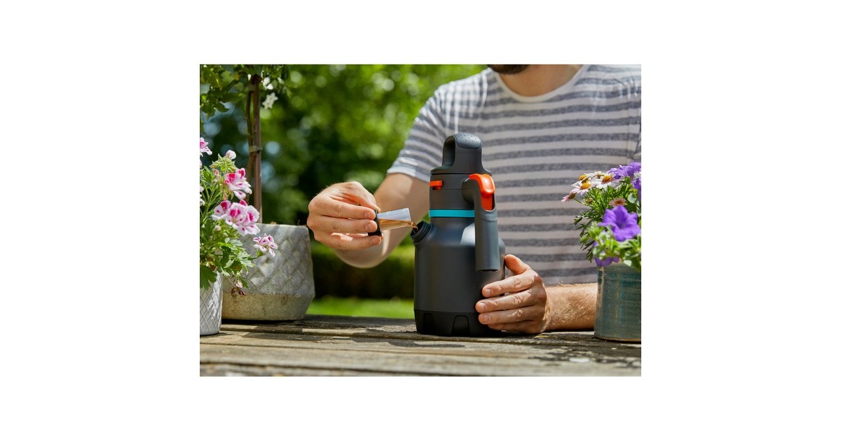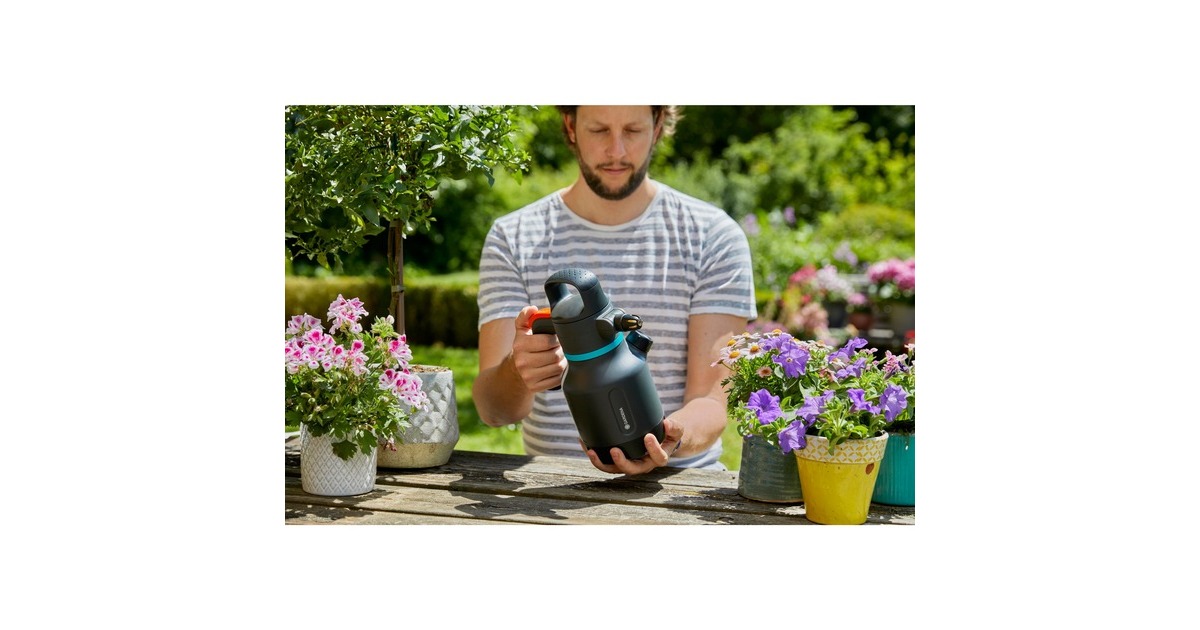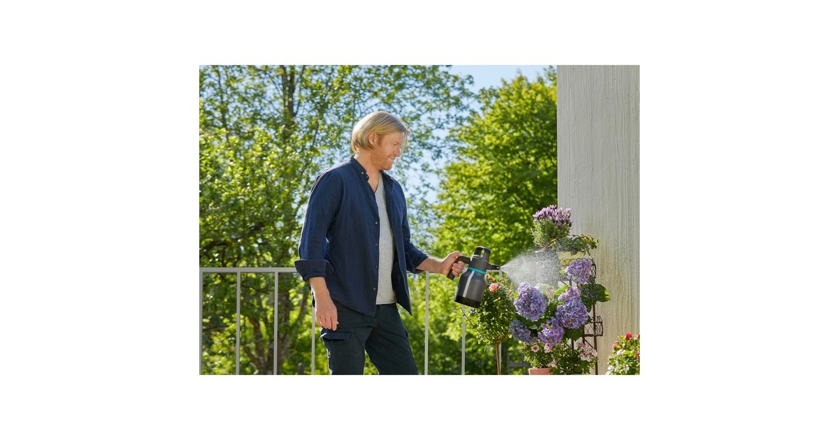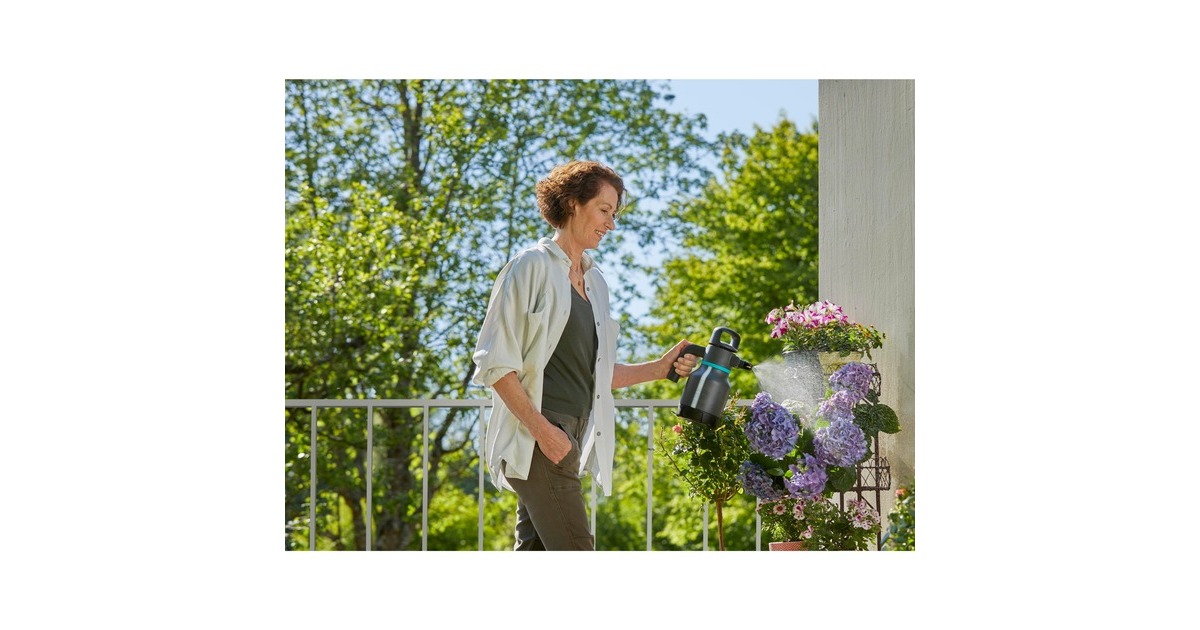 Der GARDENA Drucksprüher 1,25 L ist für anspruchsvolle Zimmerpflanzen oder kleinere Flächen in Garten und Haushalt der ideale Vielzwecksprüher. Im Unterschied zu den Pumpsprühern muss lediglich zu Beginn ein Druck im Sprüher aufgebaut werden, um anschließend die Pflanzen mühelos per Tastendruck zu bewässern. Der Drucksprüher überzeugt mit vielen Annehmlichkeiten: Der ergonomische Pump- und Handgriff ermöglicht eine angenehme Bedienung und die integrierte Dämpfung im Griff sorgt für eine optimale Stoßdämpfung beim Pumpen. Er erzeugt einen sanften Sprühnebel, der sich fein auf den Blättern verteilt. Die Sprühdüse aus Messing ist dabei vom feinen Sprühnebel bis zum Vollstrahl stufenlos verstellbar und um 90° abwinkelbar, zur Unterblatt Anwendung. Dank des speziellen, sehr flexiblen Silikonschlauchs mit Gewicht wird keine Luft angesaugt und die Drucksprüher funktionieren auch in schräger Haltung. Zusätzlich verfügt der Drucksprüher 1,25 L über einen zweiten Verschluss, der ein einfaches schnelles Öffnen ohne nasse Hände, und ein einfaches Entleeren ohne tropfenden Sprühkopf ermöglicht. Der kleine Deckel kann außerdem als Dosierkappe (Skala mit 10 und 20ml) für Dünger oder Pflanzenschutzmittel verwendet werden. Praktisch ist auch der Vorsatz am Saugrohr, in den ein Filter eingelegt werden kann, z.B. zum Ausbringen von selbst hergestellten Suden.Art.-Nr.: 1687277