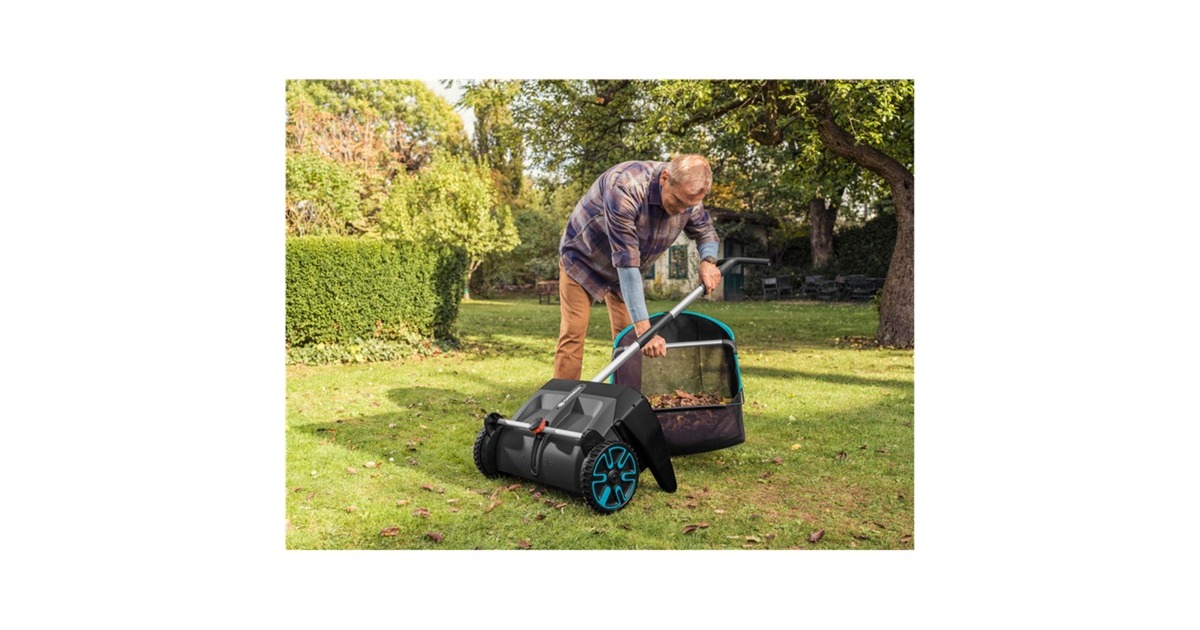 Mit dem GARDENA Laub- und Rasensammler wird das Zusammenrechen und Aufsammeln von Blättern und Grasschnitt ohne Bücken oder schmutzige Hände mühelos und einfach bequem erledigt. Der innovative, rückenfreundliche Laub- und Rasensammler arbeitet ohne Motor, er wird ähnlich einem Spindelmäher geschoben und ist somit leise und umweltfreundlich. Er eignet sich ideal für größere Hof- und Rasenflächen. Die Höhe ist verstellbar und kann an den Untergrund angepasst werden. Die ergonomisch geformten Griffe ermöglichen das leichte Schieben des Sammlers. Die speziell geformten Borsten aus hochwertigem Kunststoff befördern das Laub in den großen Fangsack, der sich zur Entleerung bequem und mühelos entnehmen lässt. Sollten die Bürsten einmal abgenutzt sein, können sie ohne Werkzeug schnell und bequem ausgetauscht werden. Hochkant an die Wand gelehnt, lässt sich der GARDENA Laub- und Rasensammler nach der Arbeit platzsparend aufbewahren.Art.-Nr.: 100017926