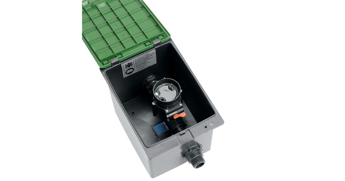 In der GARDENA Ventilbox V1 kann entweder ein Bewässerungsventil 24 V (Art.-Nr. 1278-20) oder ein Bewässerungsventil 9 V (Art.-Nr. 1251-20) unterirdisch eingebaut werden. Die Teleskop-Schraubverbindung sorgt dabei für eine einfache Ventilmontage und -demontage. Der Deckel ist kindersicher verschließbar. Die GARDENA Ventilbox V1 besitzt ein 1“-Außengewinde.Art.-Nr.: 1213357