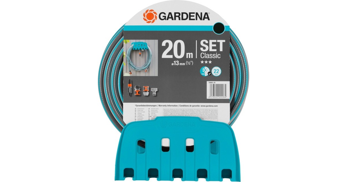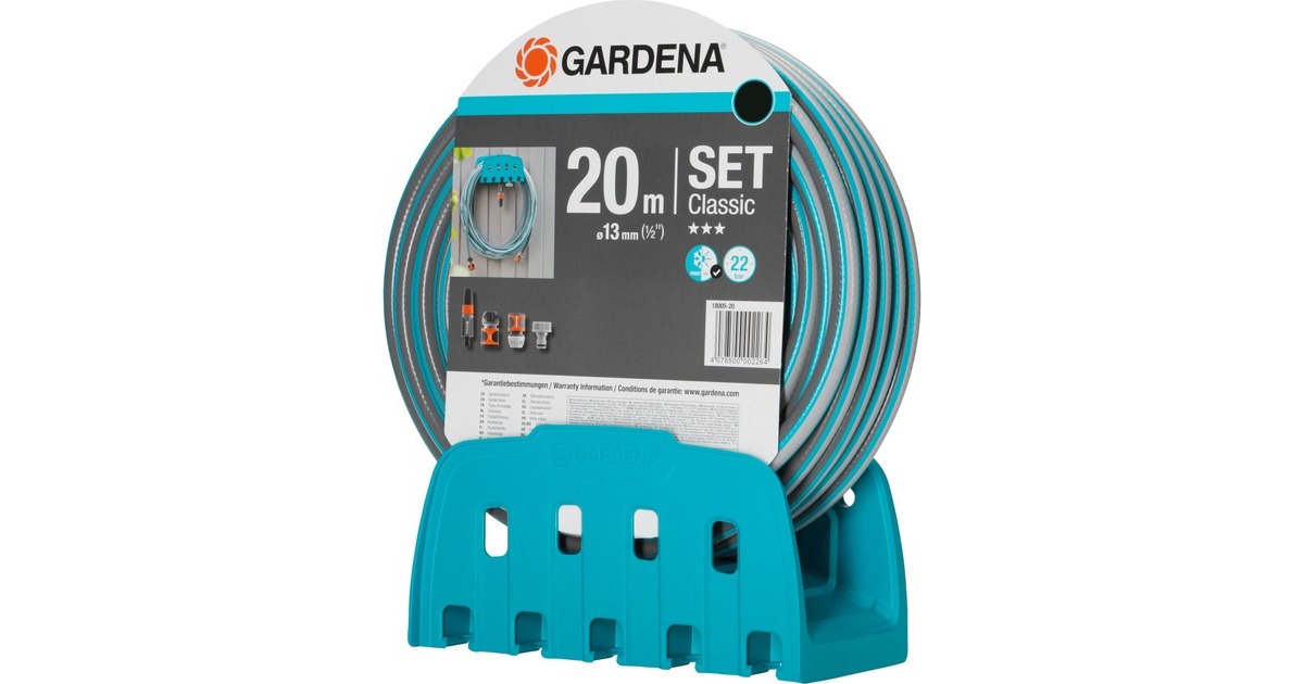 Dieses Set besteht aus dem GARDENA Wandschlauchhalter 241-20, einem 20 Meter langen GARDENA Classic Schlauch von 13mm (1/2") Durchmesser, sowie allen nötigen Original GARDENA Systemteilen. Der Schlauch ist druckfest und formstabil (Berstdruck bis zu 22 bar). Um den Schlauch aufzubewahren, wird er einfach um den Wandschlauchhalter gewickelt. Auf diese Weise ist er jederzeit einsatzbereit. Praktische Halterungen bieten die Möglichkeit Spritzen und Brausen aufzubewahren. So sind sie immer griffbereit, wenn man sie braucht - für lange Freude beim Gießen.Art.-Nr.: 1214055