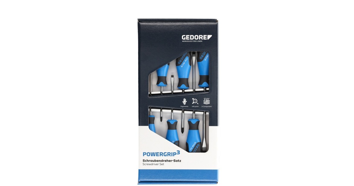 Der 6-teilige 3K-Schraubendreher-Satz 1482319 von GEDORE enthält zwei Kreuzschlitz- und vier Schlitz-Schraubendreher mit 3-Komponenten-Griff Power-Grip3 mit Aufhängeloch, der ergonomisch, hoch belastbar und rutschsicher ist. Außerdem bietet die Form des Griffs Schutz gegen unkontrolliertes Wegrollen des Schraubendrehers. Sie haben eine Klinge aus vergütetem GEDORE Molybdän-Vanadium-Plus Stahl, und eine Antriebsform-Markierung am Griffende zum leichteren Auffinden des gesuchten Profils. Die formschlüssige Verbindung von Griff und Klinge ermöglicht optimale Kraftübertragung beim Schrauben.Art.-Nr.: 1287253