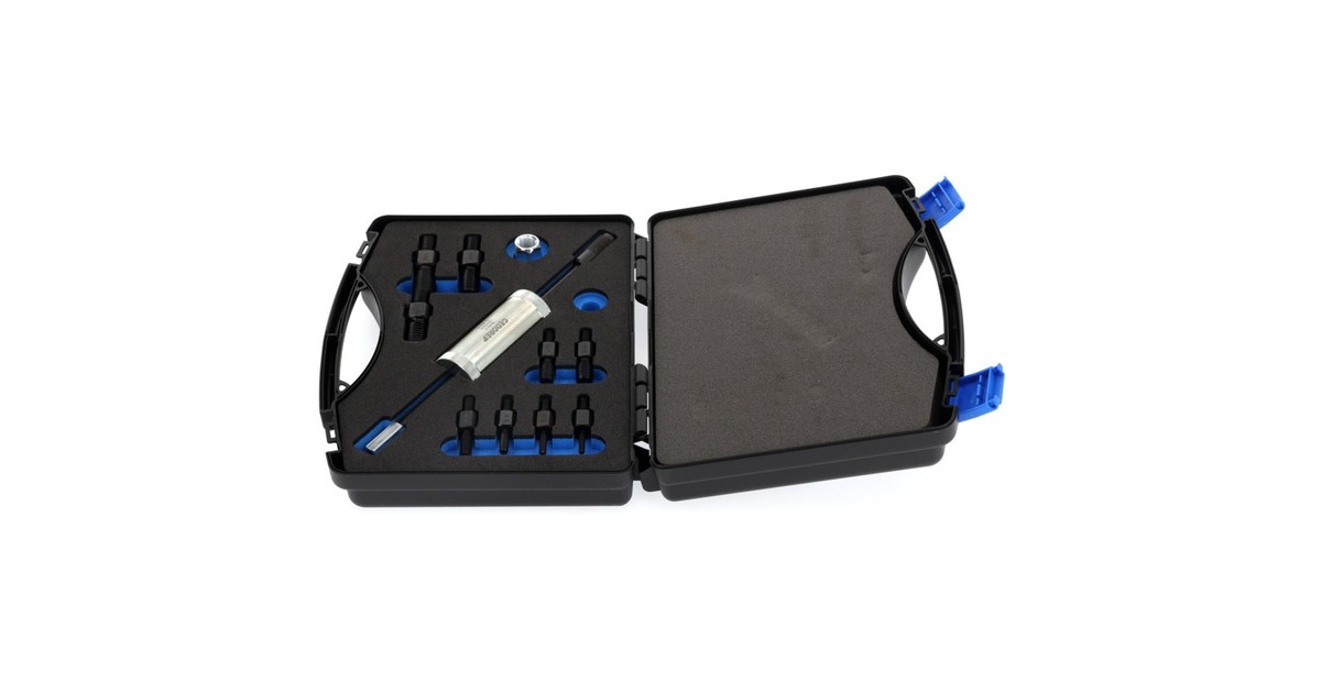 Der Gewindeadapter-Satz 1.81/K-12 von GEDORE ermöglicht z.B. das Abziehen von Gewindedeckeln, die ein Gewindeloch aufweisen.Art.-Nr.: 1802062