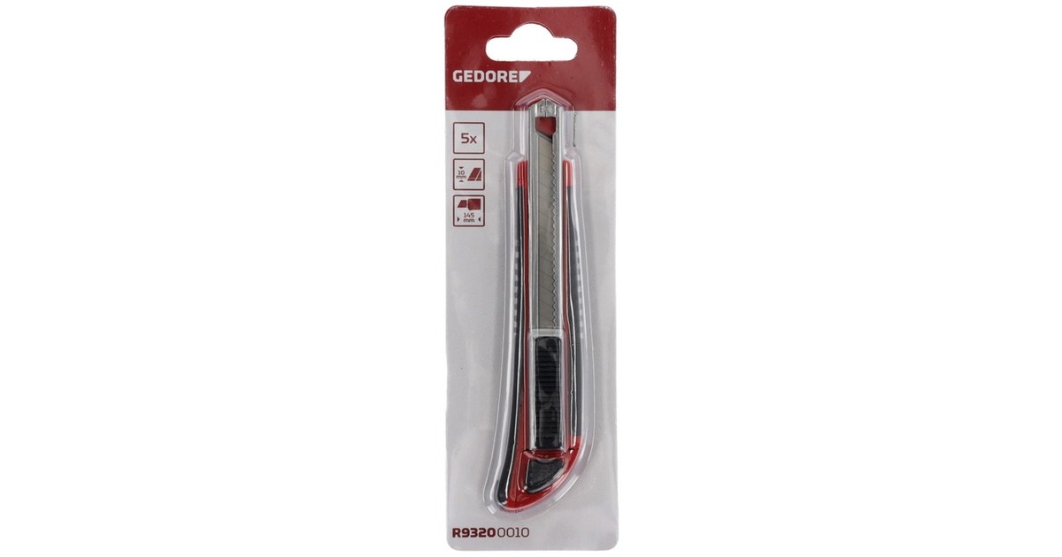 Das GEDORE red Cuttermesser R93200010 wird mit 5 Klingen ausgeliefert. Das gerade Gehäuse aus Kunststoff verfügt über eine Klingenführung aus Metall. Das Cuttermesser ermöglicht Einhandbedienung und ist für Rechtshänder geeignet. Die Abbrech-Klinge ist 9mm breit und 8cm lang.Art.-Nr.: 1471869
