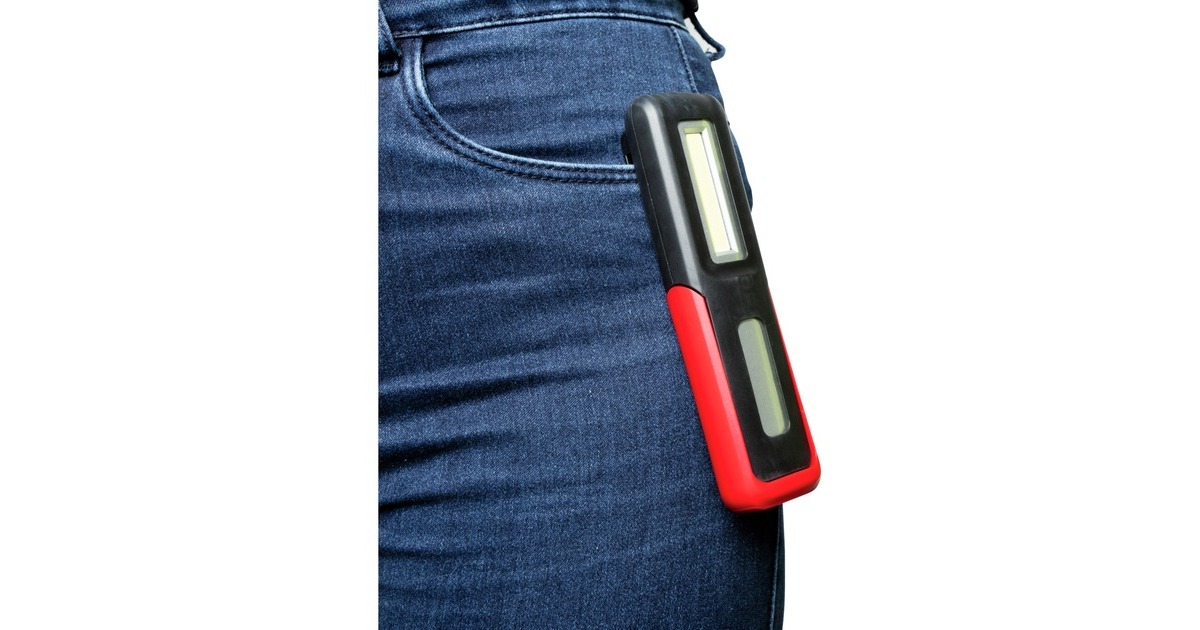 Die Arbeitslampe Gedore Red aus der Impulse-Serie ist ein solider Arbeitsgefährte aus ABS-Kunststoff. Diese Leuchte verfügt über einen Lithium-Ionen-Akku, der bis zu 3 Stunden Leuchtdauer erreicht und sich per micro-USB-Anschluss laden lässt. Mit einem Schalter an der Rückseite lassen sich die zwei integrierten LEDs am Kopf und an der Front bedienen. Mit einem um 360° drehbaren Haken und einem magnetischen, in 6 Stufen um 180° drehbaren Fuß lässt sie sich leicht befestigen. Hinzu kommt ein integrierter Gürtelclip. Art.-Nr.: 1476501