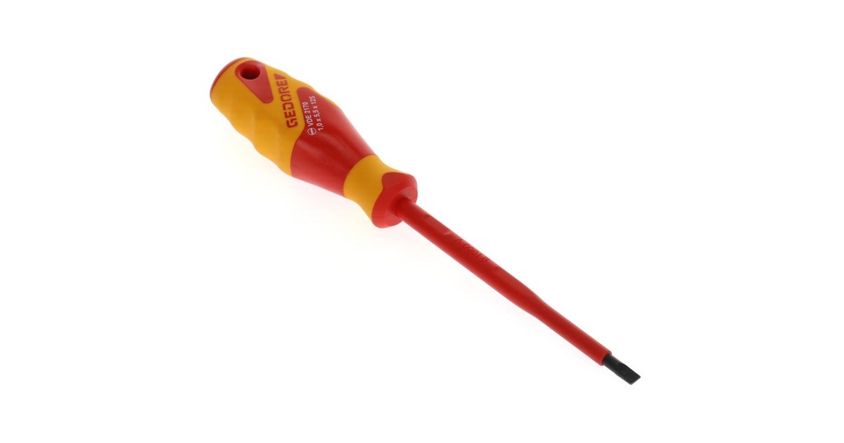 Der VDE-Schraubendreher VDE 2170 5,5 von GEDORE verfügt über den ergonomischen 3-Komponenten-Griff Power-Grip3 mit Aufhängeloch. Der Schraubendreher ist nach VDE isoliert und stückgeprüft bis 1.000 Volt, nach EN 60900/IEC 60900, mit vollisolierter Klinge. Die Klinge ist aus GEDORE Molybdän-Vanadium-Plus Stahl gefertigt und vergütet. Am Griffende befindet sich eine Antriebsform-Markierung, zum leichteren Auffinden des gesuchten Profils. Die formschlüssige Verbindung von Griff und Klinge gewährleistet optimale Kraftübertragung beim Schrauben.Art.-Nr.: 1436466