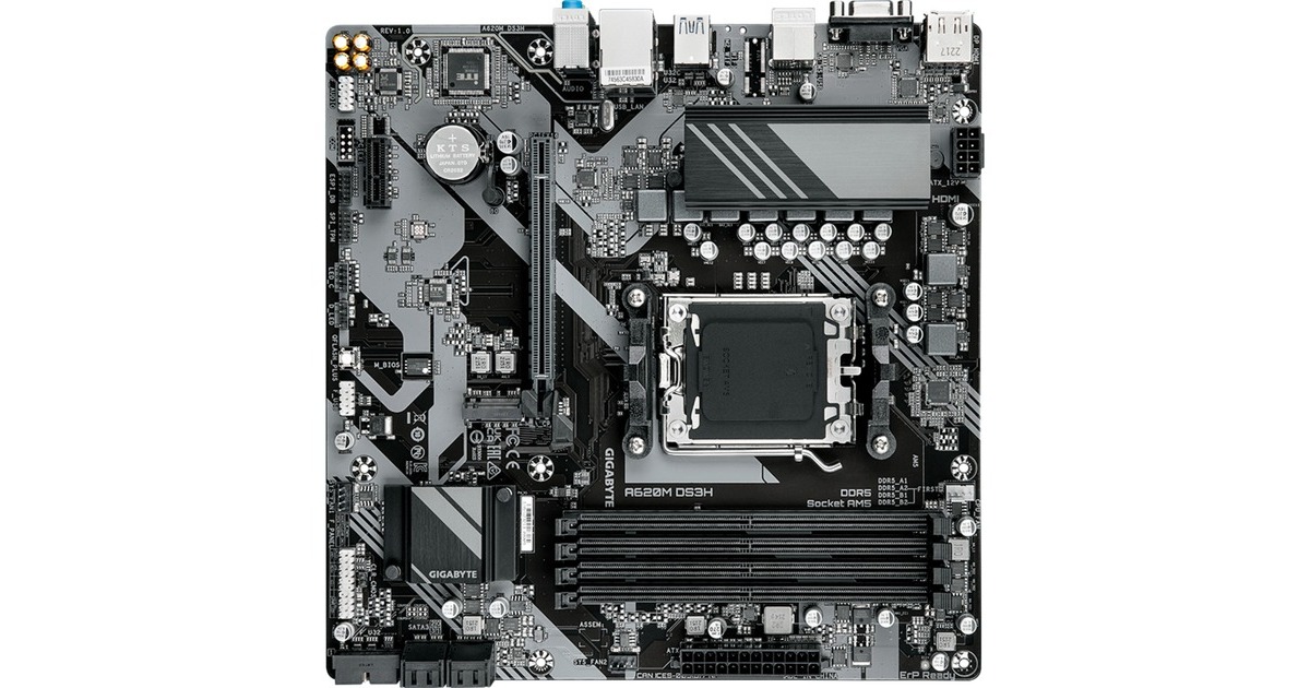 Das GIGABYTE A620M DS3H basiert auf dem AMD-A620-Chipsatz und unterstützt AMD-Prozessoren für den Sockel AM5. Es verfügt über vier DDR5-Slots für bis zu 192 GB Arbeitsspeicher. Zur weiteren Ausstattung des GIGABYTE A620M DS3H gehören ein PCIe-4.0-x16-Slot und ein PCIe-3.0-x1 Slot. Außerdem verfügt das GIGABYTE A620M DS3H über 8-Kanal-Sound, eine Gigabit-LAN-Schnittstelle, vier SATA3-Anschlüsse, einen M.2-Anschluss und eine Reihe an USB-Schnittstellen.Art.-Nr.: 100015855