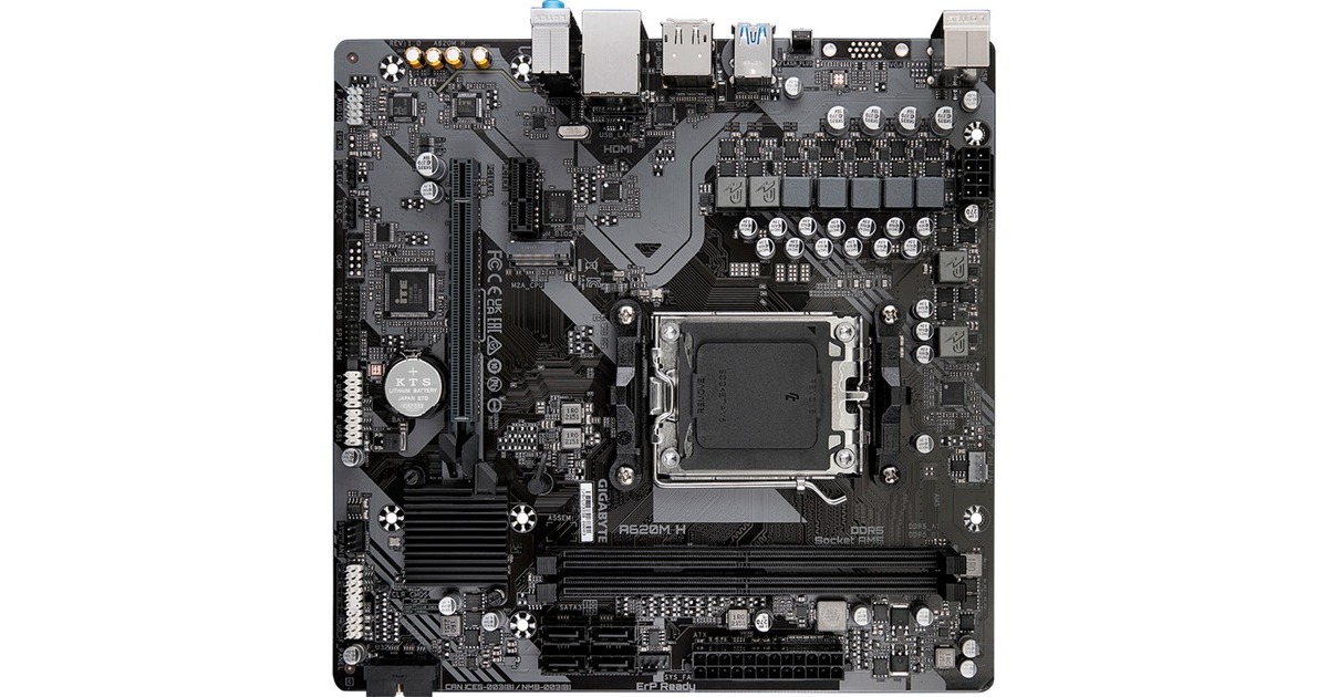 Das GIGABYTE A620M H basiert auf dem AMD-A620-Chipsatz und unterstützt AMD-Prozessoren für den Sockel AM5. Es verfügt über zwei DDR5-Slots für bis zu 96 GB Arbeitsspeicher. Zur weiteren Ausstattung des GIGABYTE A620M H gehören ein PCIe-4.0-x16-Slot und ein PCIe-3.0-x1 Slot. Außerdem verfügt das GIGABYTE A620M H über 8-Kanal-Sound, eine Gigabit-LAN-Schnittstelle, vier SATA3-Anschlüsse, einen M.2-Anschluss, CPU-abhängige Grafikausgänge für DisplayPort und HDMI sowie eine Reihe an USB-Schnittstellen.Art.-Nr.: 100025060
