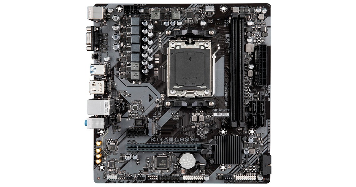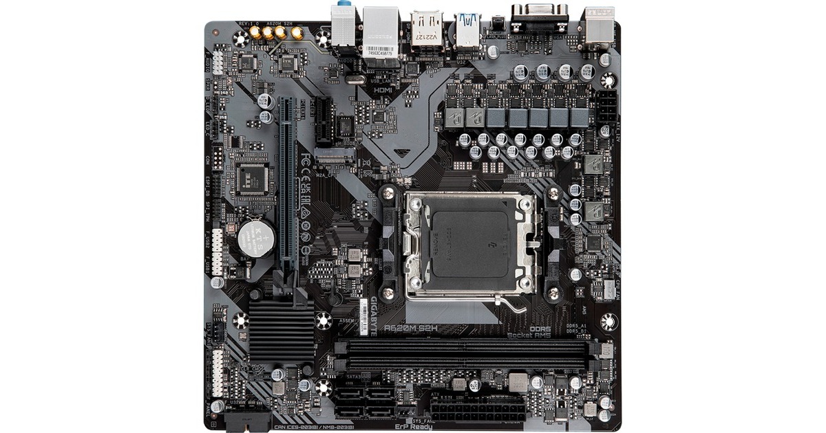 Das GIGABYTE A620M S2H basiert auf dem AMD-A620-Chipsatz und unterstützt AMD-Prozessoren für den Sockel AM5. Es verfügt über zwei DDR5-Slots für bis zu 96 GB Arbeitsspeicher. Zur weiteren Ausstattung des GIGABYTE A620M S2H gehören ein PCIe-4.0-x16-Slot und ein PCIe-3.0-x1 Slot. Außerdem verfügt das GIGABYTE A620M S2H über 8-Kanal-Sound, eine Gigabit-LAN-Schnittstelle, vier SATA3-Anschlüsse, einen M.2-Anschluss, CPU-abhängige Grafikausgänge für DisplayPort, HDMI und VGA sowie eine Reihe an USB-Schnittstellen.Art.-Nr.: 100025058