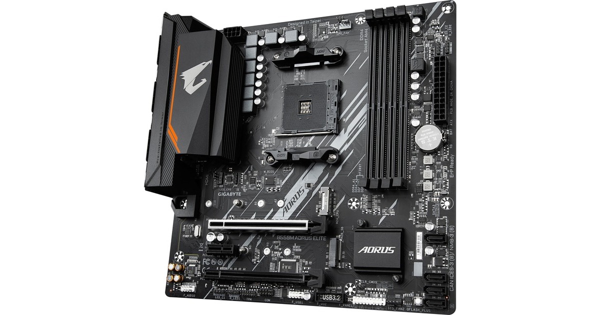 Das GIGABYTE B550M AORUS ELITE basiert auf dem AMD-B550-Chipsatz und unterstützt AMD-Prozessoren für den Sockel AM4. Es verfügt über vier DDR4-Slots für bis zu 128 GB Arbeitsspeicher. Zur weiteren Ausstattung des GIGABYTE B550M AORUS ELITE gehören ein PCIe-4.0-x16-Slot, ein PCIe-3.0-x16-Slot und ein PCIe-3.0-x1-Slot. Außerdem verfügt das GIGABYTE B550M AORUS ELITE über 8-Kanal-Sound, eine Gigabit-LAN-Schnittstelle, vier SATA3-Anschlüsse, zwei M.2-Anschlüsse und eine Reihe an USB Schnittstellen.Art.-Nr.: 1647992