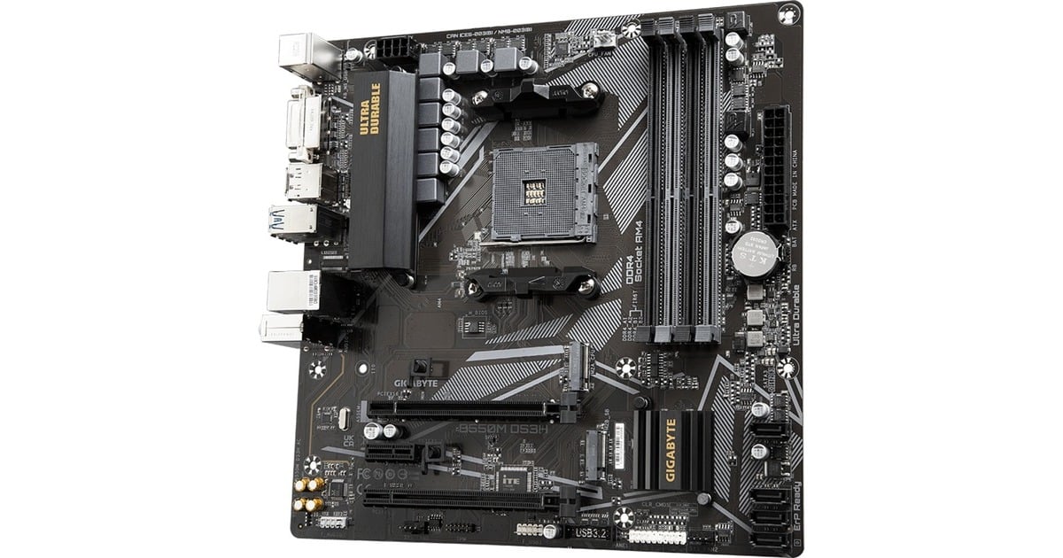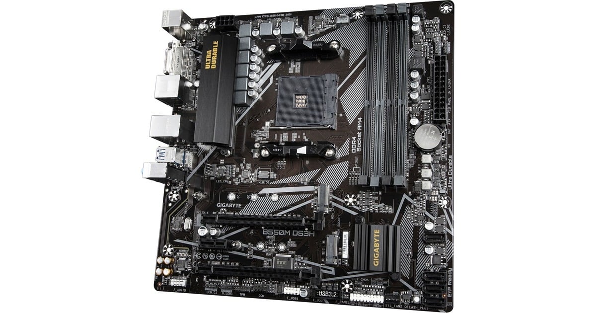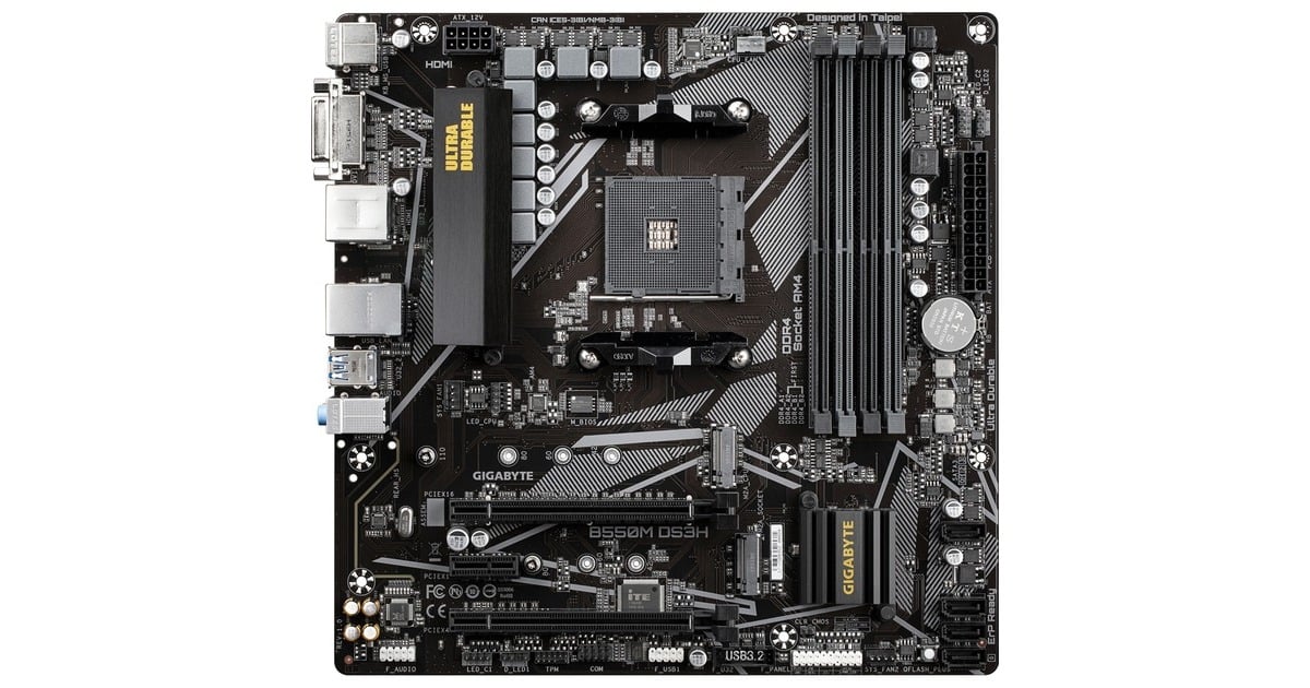 Das GIGABYTE B550M DS3H basiert auf dem AMD-B550-Chipsatz und unterstützt AMD-Prozessoren für den Sockel AM4. Es verfügt über vier DDR4-Slots für bis zu 128 GB Arbeitsspeicher. Zur weiteren Ausstattung des GIGABYTE B550M DS3H gehören ein PCIe-4.0-x16-Slot, ein PCIe-3.0-x16-Slot und ein PCIe-3.0-x1-Slot. Außerdem verfügt das GIGABYTE B550M DS3H über 8-Kanal-Sound, eine Gigabit-LAN-Schnittstelle, vier SATA3-Anschlüsse, zwei M.2-Anschlüsse und eine Reihe an USB Schnittstellen.Art.-Nr.: 1647993
