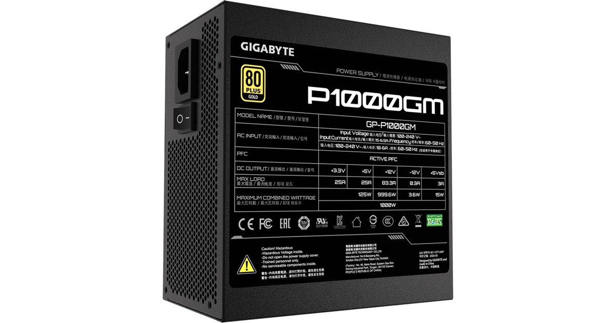 GIGABYTE GP-P1000GM 1000W, PC-Netzteil(schwarz, 6x PCIe, Kabel-Management, 1000 Watt, Outlet)
