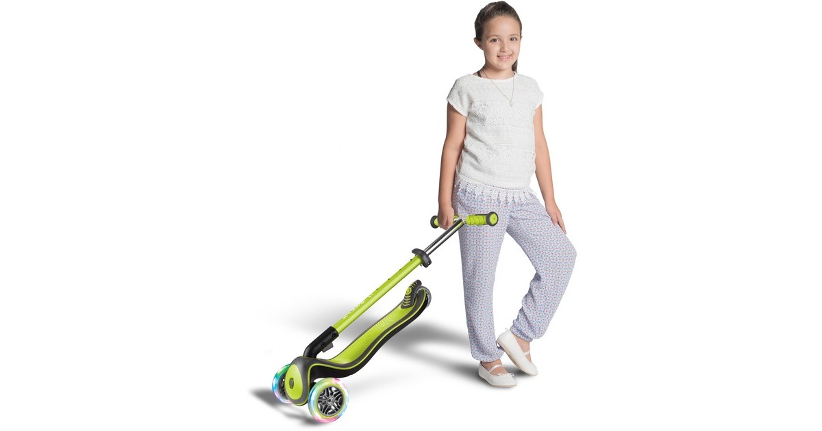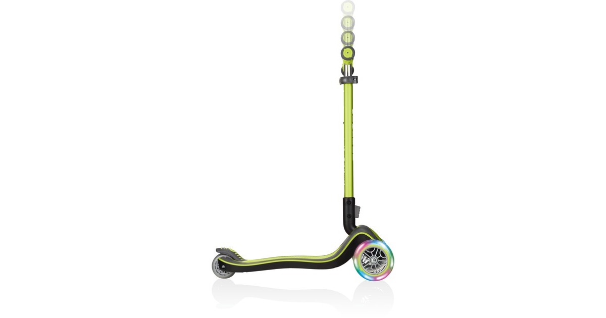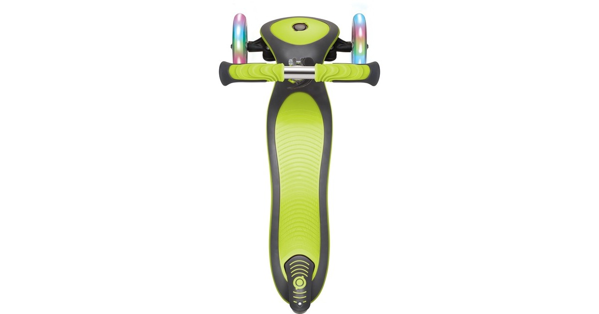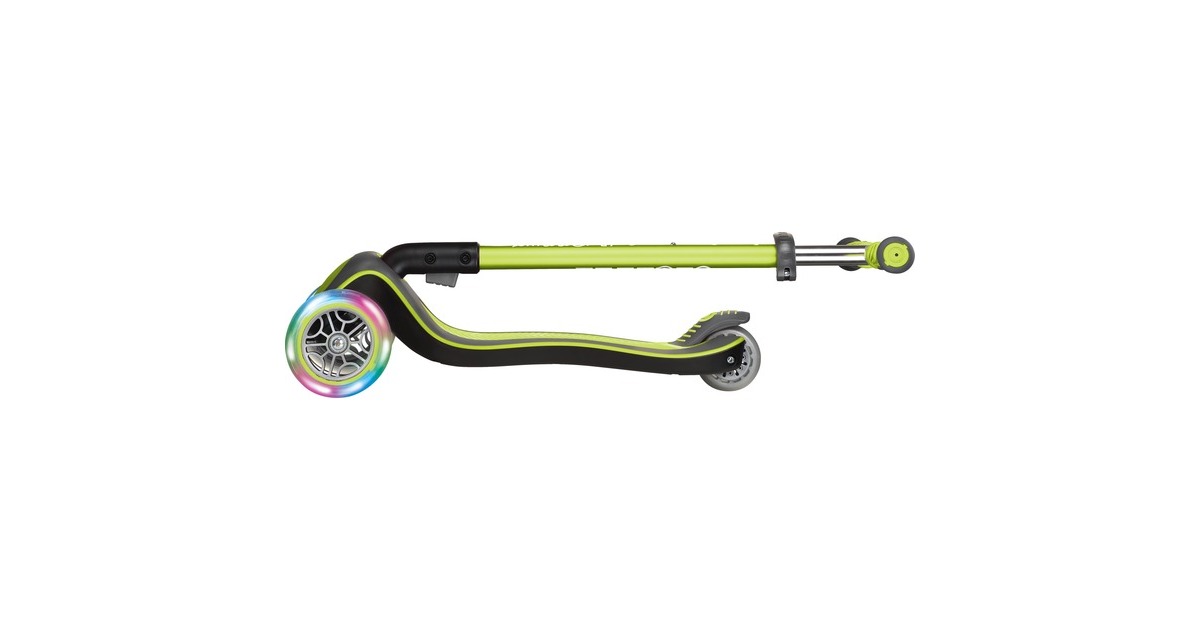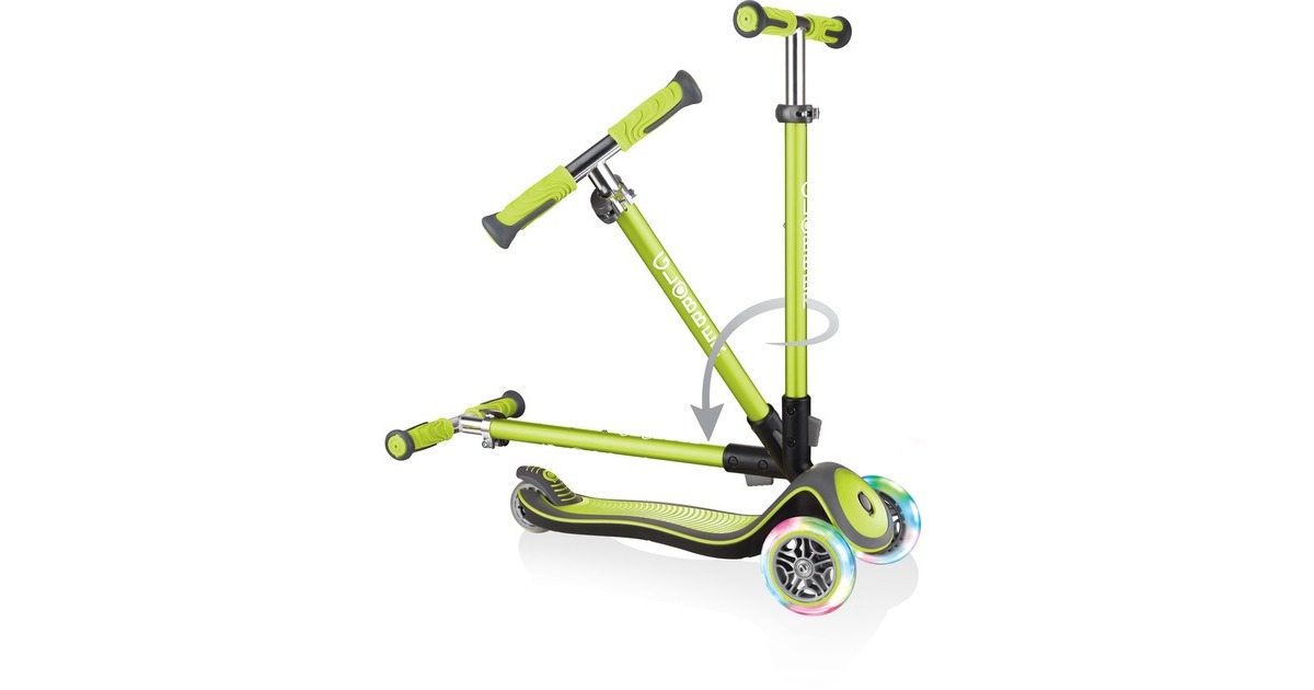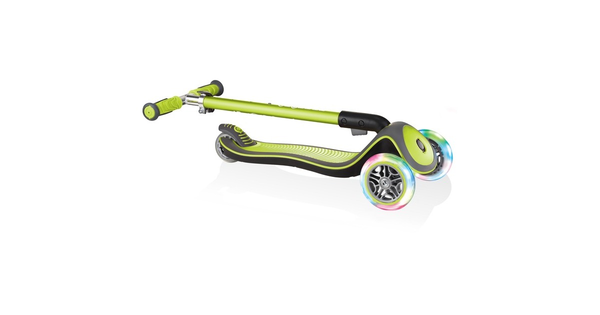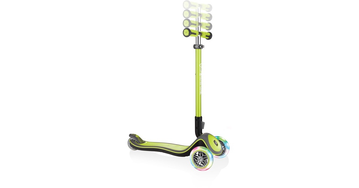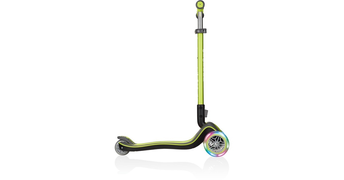 Der Elite Deluxe Roller bietet mit farbiger Lenkstange und optimierten zweifarbigen Griffen jede Menge Fahrspaß. Ein neues Designkonzept ermöglicht das einfache Zusammenklappen. Ein weiteres Feature des Rollers sind die Leuchtrollen. Das mit Nylon verstärke, sehr stabile 2-Layer Deck ist tiefer gelegt und extra breit, so können leichter beide Füße aufgestellt werden. Die Bi-Injektion Trittfläche besteht aus gummiertem Material. So sorgt das Deck für optimale Kontrolle und erhöht den Komfort und die Steuerung. Durch die zuschaltbare Lenkeinrastung lässt sich einfach und sicher Fahren lernen. Der Lenker ist höhenverstellbar und kann so optimal an die Größe des Kindes angepasst werden. Die ergonomischen Handgriffe im Bi-Injection Design sind langlebig und komfortabel. Der Elite Deluxe verfügt außerdem über eine optimierte und besonders breite Hi-impact double Injection Reibungsbremse mit Speichenschutz sowie über super High Rebound gegossenen PU Rollen in