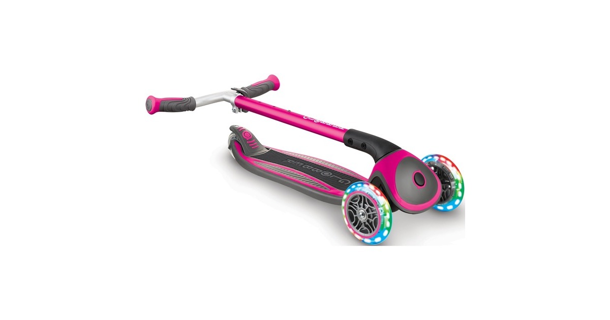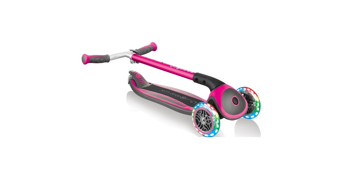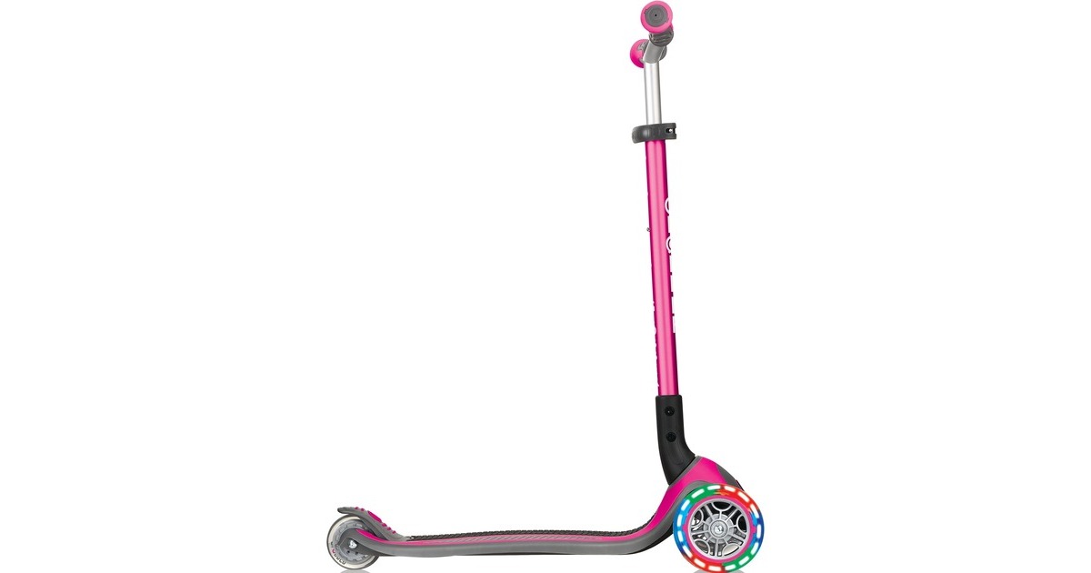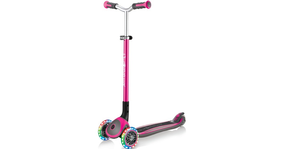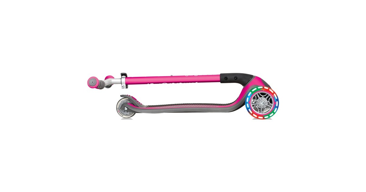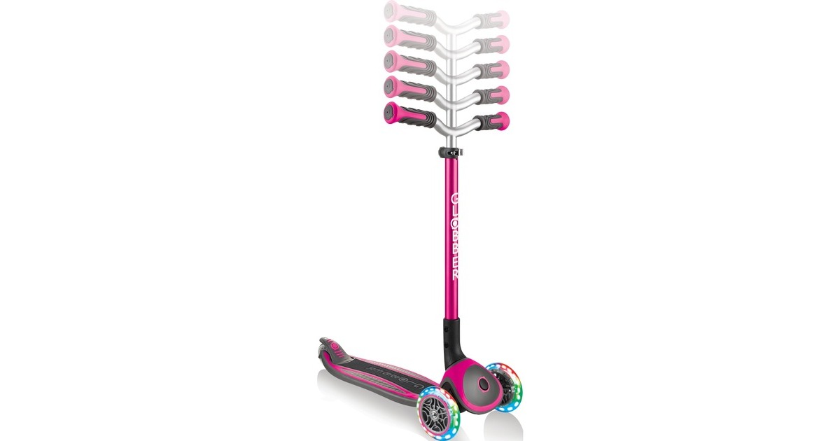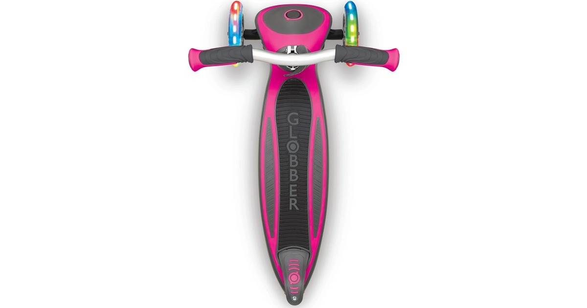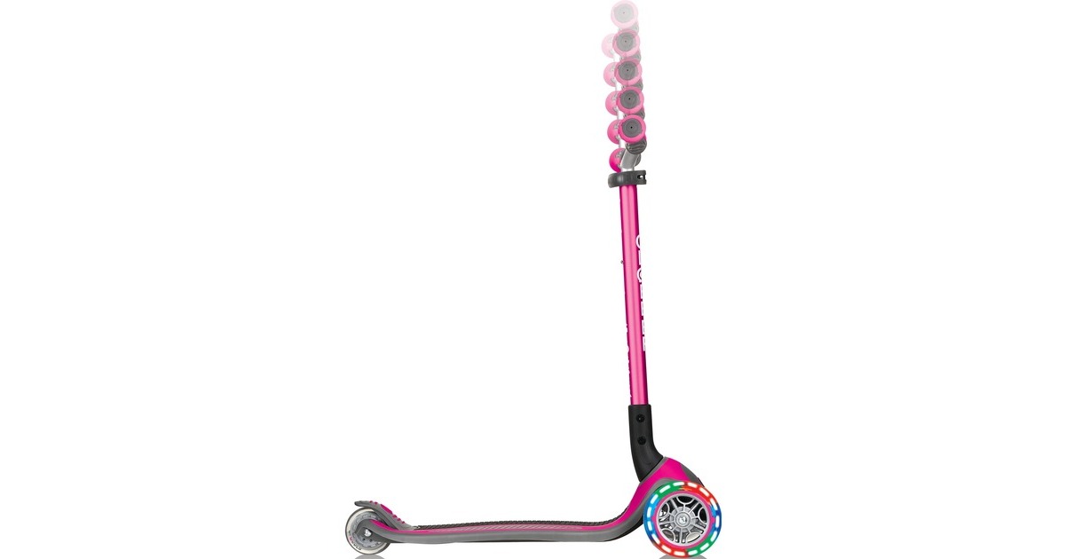 Der Master Lights Roller im neuem Design bietet jede Menge Fahrspaß. Der Lenker ist extra breit und 5-fach höhenverstellbar zur optimalen Anpassung an das Kind. Durch die zuschaltbare Lenkeinrastung und die ergonomischen Handgriffe lässt sich einfach und sicher Fahren lernen. Das extra lange und breite Bi-Injection-Verbunddeck mit weichem, bequemem EVA-Schaum in der Mitte auf einer niedrigen metallverstärkten Struktur trägt bis zu 50 kg. Das Fahrwerk mit Kugellager ABEC 5 dient der optimalen Steuerung. Der Master Lights verfügt außerdem über eine extra lange und breite Hinterradbremse sowie über super High Rebound gegossene PU Rollen mit Lechtfunktion vorne (batterielos) in 120 mm und 80 mm. Nach dem Fahren lässt sich der Master Lights durch das patentierte Klappsystem einfach zusammenklappen.
