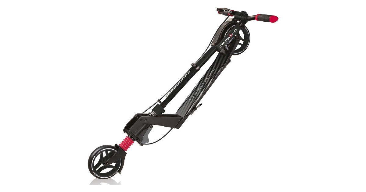 Der One K 165 Deluxe ist nicht nur hochwertig verarbeitet, sondern zusammengeklappt auch wie ein Trolley ziehbar. Dieser Scooter mit einer Tragkraft von maximale 100 Kilogramm verfügt über eine Handbremse und eine Frontfederung. Dabei rollt dieser Scooter auf gegossenen PU-Rollen (Durchmesser 165 mm, Breite 40 mm) mit ABEC 7 Kugellagern und verfügt über eine Hinterradreibungsbremse aus Aluminium. Der extrabreite Lenker im BMX-Stil ist mit ergonomischen Griffen ausgestattet. Die Lenkstange lässt sich von 93 bis 108 Zentimeter in der Höhe verstellen. Das Deck mit Antirutsch-Trittfläche besteht aus Aluminium. Art.-Nr.: 1700483