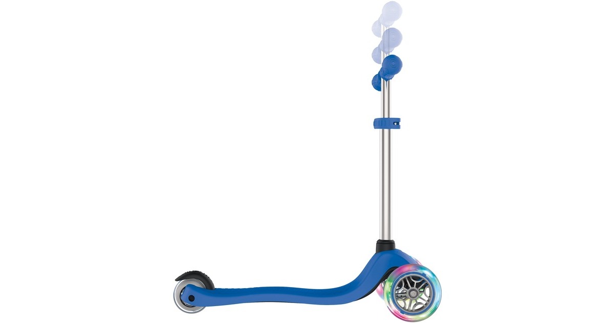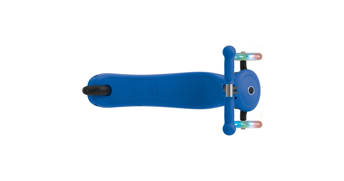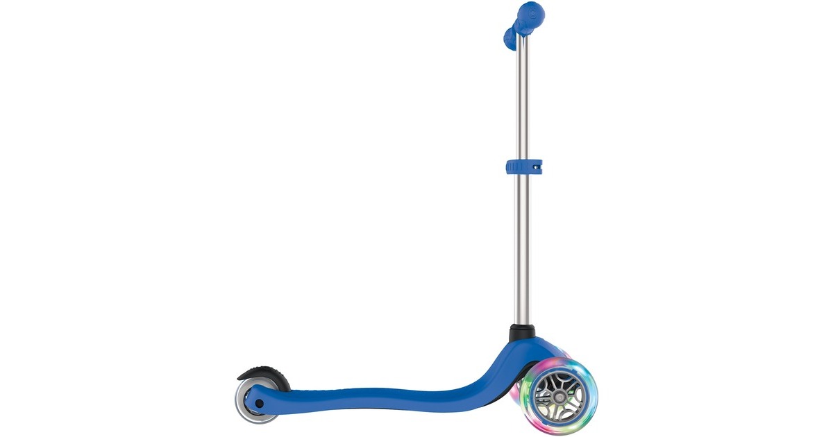 Der Primo Lights Roller mit neuem Designkonzept bietet jede Menge Fahrspaß. Der Lenker ist abnehm- und höhenverstellbar zur optimalen Anpassung an das Kind. Durch die Lenkeinrastung und die ergonomischen Handgriffe lässt sich einfach und sicher Fahren lernen. Ein weiteres Feature des Rollers sind die extra breiten Leuchtrollen. Das mit Nylon verstärke, sehr stabile X-Cross Deck ist tiefer gelegt, so können leichter beide Füße aufgestellt werden. Das sorgt für optimale Kontrolle und erhöhten Komfort. Das Fahrwerk mit Kugellager ABEC 5 dient der optimalen Steuerung. Der Primo Lights verfügt außerdem über eine optimierte Reibungsbremse mit Speichenschutz sowie über super High Rebound gegossenen PU Rollen in 120 mm und 80 mm. Art.-Nr.: 1586674
