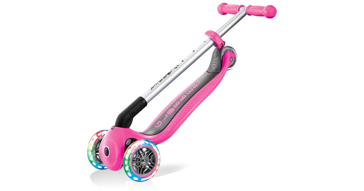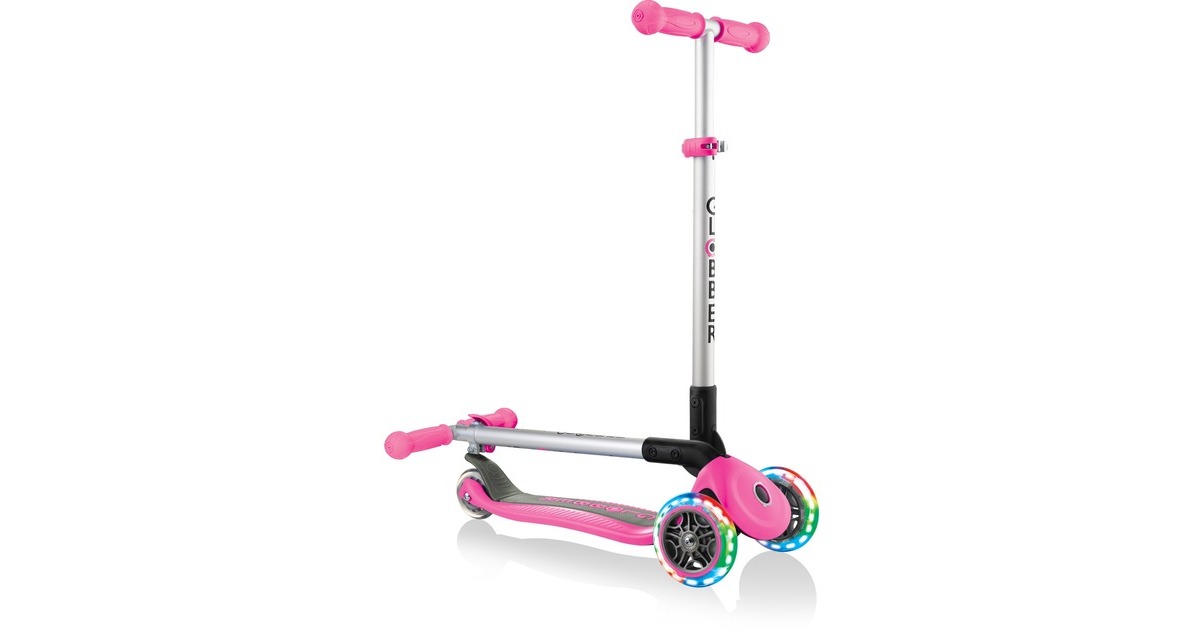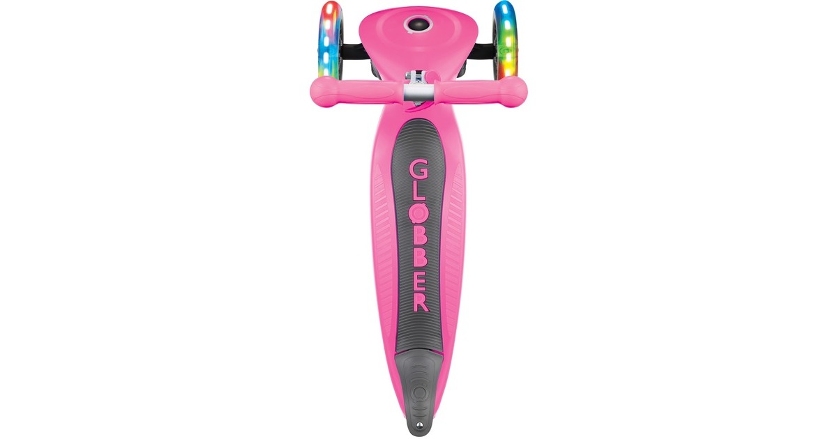 Der Primo Lights Roller mit neuem Designkonzept bietet jede Menge Fahrspaß. Der Lenker ist abnehm- und höhenverstellbar zur optimalen Anpassung an das Kind. Durch die Lenkeinrastung und die ergonomischen Handgriffe lässt sich einfach und sicher Fahren lernen. Ein weiteres Feature des Rollers sind die extra breiten Leuchtrollen. Das mit Nylon verstärke, sehr stabile X-Cross Deck ist tiefer gelegt, so können leichter beide Füße aufgestellt werden. Das sorgt für optimale Kontrolle und erhöhten Komfort. Das Fahrwerk mit Kugellager ABEC 5 dient der optimalen Steuerung. Der Primo Lights verfügt außerdem über eine optimierte Reibungsbremse mit Speichenschutz sowie über super High Rebound gegossenen PU Rollen in 120 mm und 80 mm. Art.-Nr.: 1586715