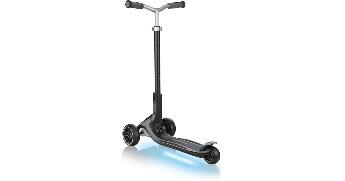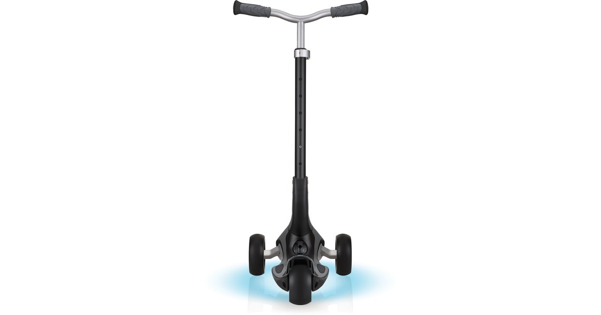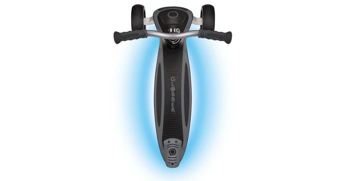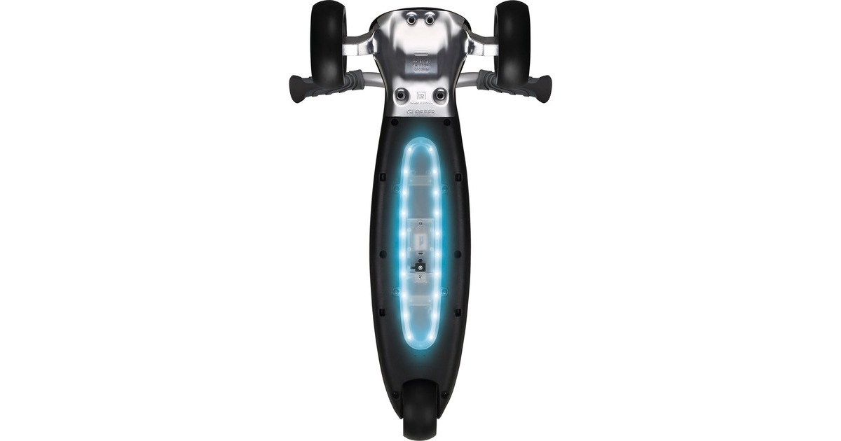 Tolles Design, hohe Flexibilität: Der Ultimum Lights ist ein Scooter für die ganze Familie. Er steht auf drei gegossenen PU-Rollen mit einem Durchmesser von 125 Millimetern (vorne) und 90 Millimetern (hinten), die mit ABEC 7 Kugellagern gelagert sind. Gesteuert wird der Ultimum Lights über das innovative, per Drehknopf anpassbare Lenkwinkelsystem. Das extra tiefe Deck hat an der Unterseite ein mehrfarbiges LED-Leuchtmodul mit 12 Leuchteinstellungen und USB-Anschluss zum Laden. Dieser hochwertige Scooter ist faltbar und bietet den praktischen Trolley-Modus zum Transport. Er ist für ein maximale Benutzergewicht von 100 Kilogramm ausgelegt.Art.-Nr.: 1700356
