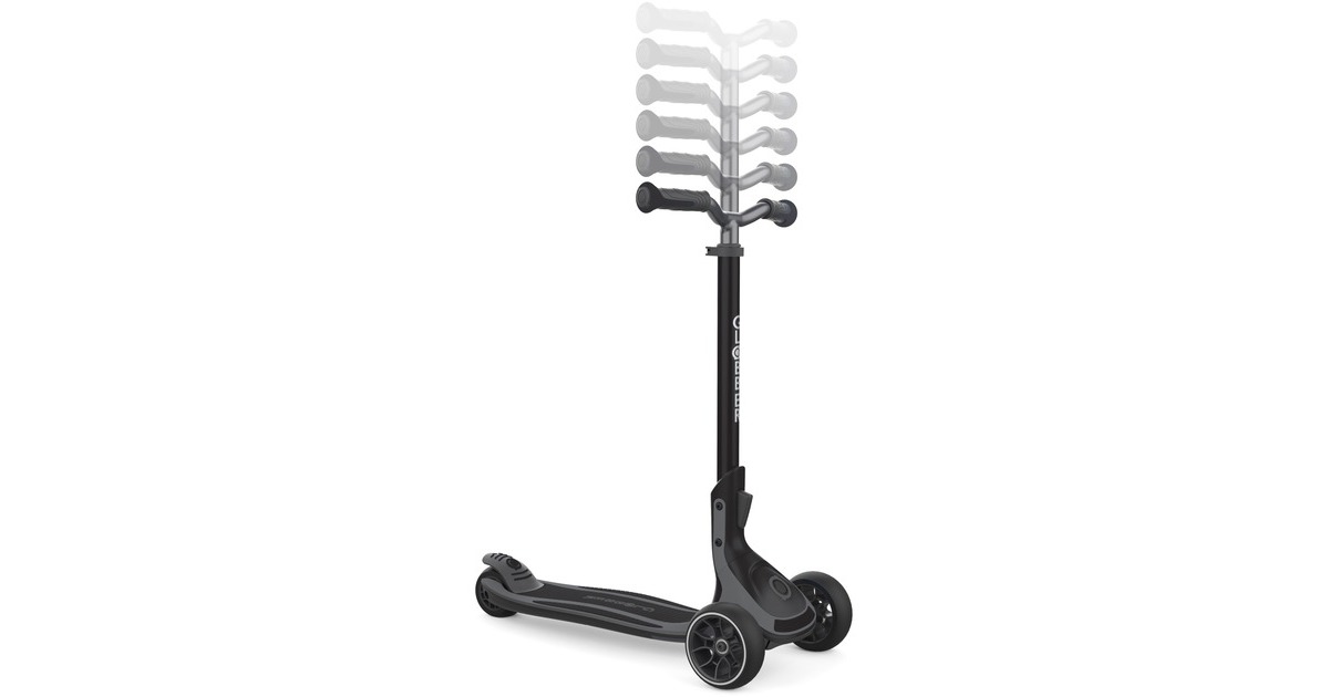 Der Ultimum Scooter sorgt in jedem Alter für Fahrspaß. Der 3-Rad-Roller ist für Kinder, Jugendliche und Erwachsene geeignet. Der Aluminium T-Bar Lenker ist in Höhe verstellbar und ist dazu mit zweifarbigen TPR-Griffen sowie einem TPR-Frontspoiler ausgestattet. Die ergonomische Bremse und das breite Deck sorgen für Komfort und Sicherheit. Ein weiteres Feature ist das einstellbare Lenkwinkelsteuerungssystem. Damit kann der Wenderadius der Vorderräder ganz einfach an den gewünschten Fahrstil anpassen. Für mehr Grip und dadurch sicheres Fahren sorgen die 125 mm PU Vorderräder und das 90 mm PU Hinterrad mit ABEC 7 Kugellager. Nach der Fahrt lässt sich der Ultimum dank des patentierten Ellipsensystems einfach zusammenfalten. Art.-Nr.: 1586874