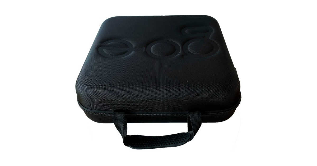 Maße geöffnet: 795 x 390 x65 mm, robustes, strapazierfähiges Hardcover aus gewebter Stoff-/Kunststoffmischung mit einseitig abgesetztem go-e Logo, Stoßkante aus Stoff mit nach außen abgesetztem schwarzen Reißverschluß und komfortablen Zipper aus Metall/Kunststoff, 2 Henkel aus Stoff mit gummiertem Komfort-Tragegriff |