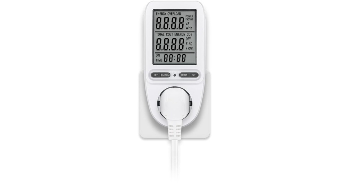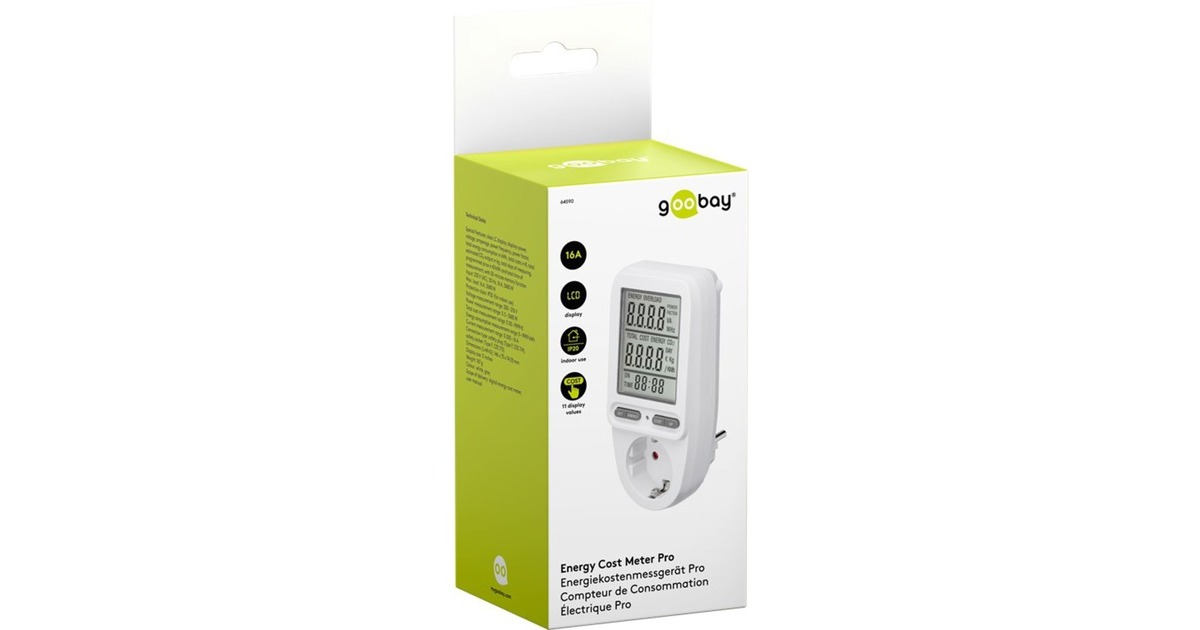 Das digitale Energiekostenmessgerät Pro von goobay dient zur Messung des Stromverbrauchs von elektrischen Haushaltsgeräten und zur Berechnung der laufenden Kosten. Es hilft dabei, das Einsparpotenzial zu ermitteln, z.B. für Kühlschränke, Waschmaschinen, Computer, Fernseher, Aquarien oder Stehlampen. Es kalkuliert dabei die Stromkosten in Euro/kWh nach den individuellen Stromtarif-Angaben. Das digitale Energiekostenmessgerät Pro verfügt über einen großen Messbereich zwischen 0,5 und 3.680 Watt (max. Leistung 3.680 W, 16 A bei 230 V). Das Strommessgerät zeigt mit gut lesbarem, dreizeiligem LC-Display gleichzeitig den Energieverbrauch, die Energiekosten oder die CO₂-Belastung in kg und die Verbrauchszeit an. Außerdem speichert es die Daten nach dem Abkoppeln vom Strom bis zu 20 Minuten und ermöglicht so auch den Wechsel zwischen verschiedenen Haushaltsgeräten ohne Datenverlust. Die Bedienung über vier Tasten und der Anschluss durch einfaches Einstecken zwischen Abnehmer und Steckdose gestalten sich sehr einfach.Art.-Nr.: 100033495