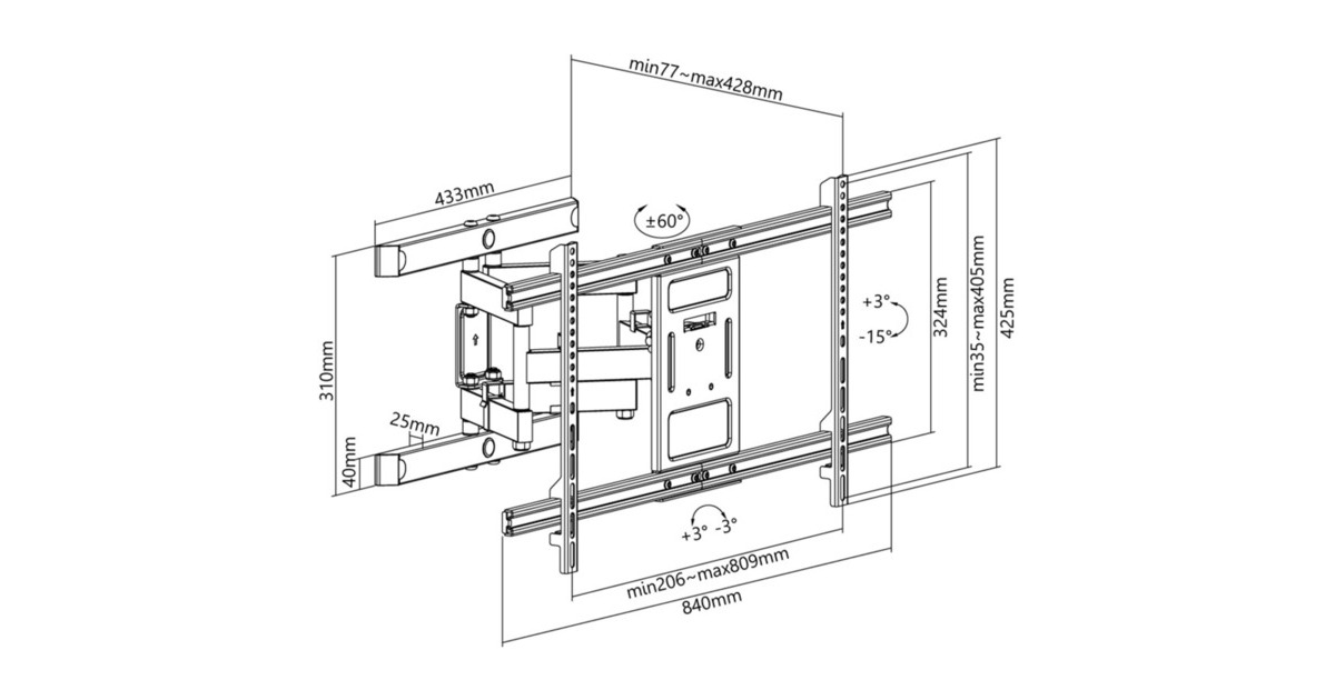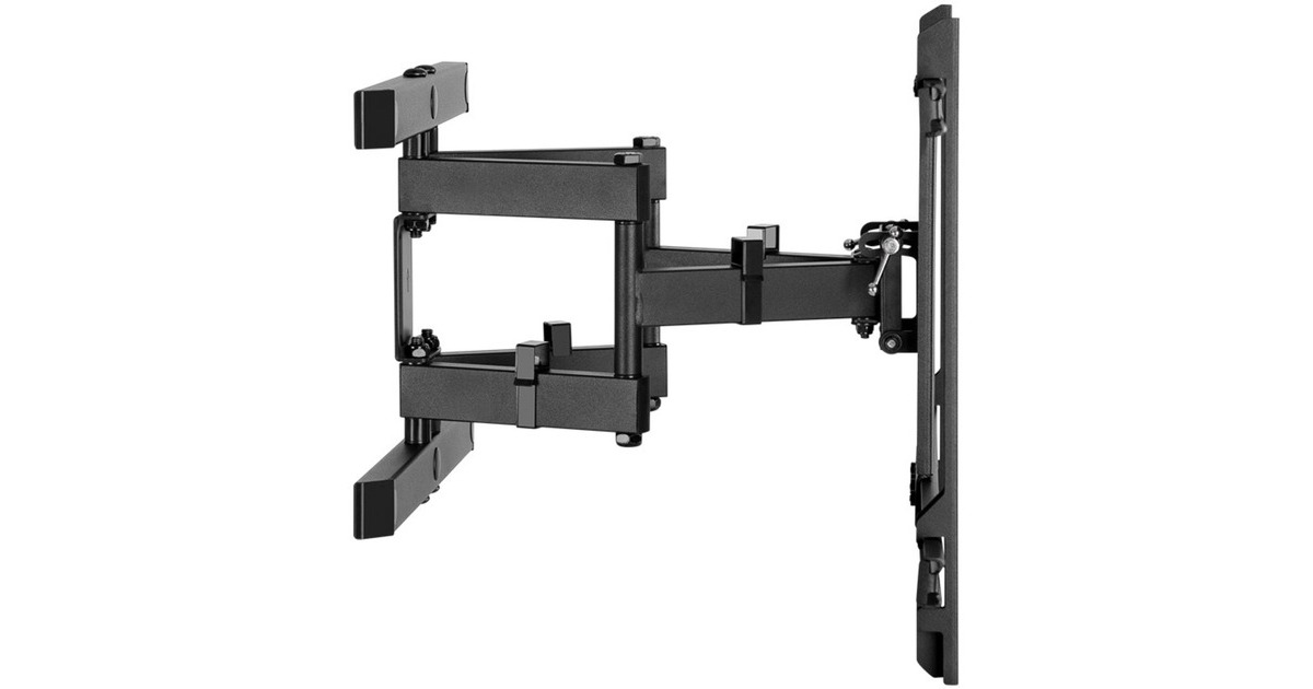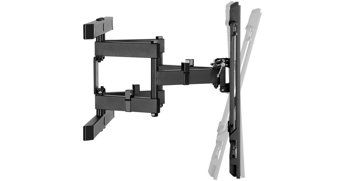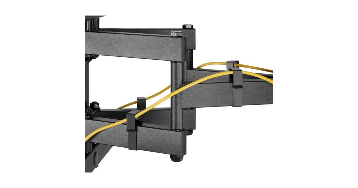 Die Fullmotion-Halterung eignet sich für die meisten 43-100" (109-254 cm) Fernseher bis zu 60 kg. Diese Halterung bietet bis zu 428 mm Wandabstand und ermöglicht somit einen optimalen Schwenkwinkel. Fullmotion ermöglicht maximale Flexibilität – so kann der Fernseher ohne Werkzeug geneigt, geschwenkt, ausgefahren und justiert werden, um ihn von jedem beliebigen Sitzplatz im Raum bequem betrachten zu können. Die Justierung nach der Installation stellt sicher, dass der Fernseher perfekt an der Wand positioniert ist. Das integrierte Kabelmanagementsystem sorgt für Ordnung und Schutz der Kabel.Art.-Nr.: 1678376