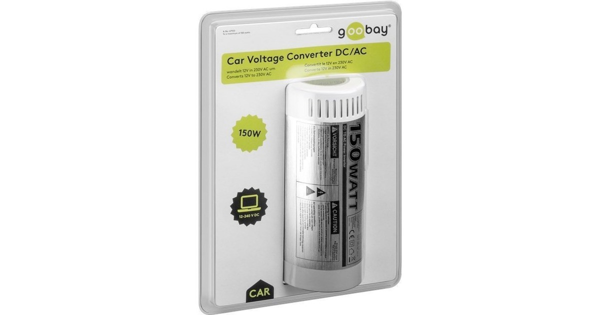 Der goobay KFZ-Spannungswandler DC/AC wandelt 12 V DC in 230 V AC um. Die 230 V Wechselspannung kann zum mobilen Betrieb von original Notebook-Netzteilen mit einer Leistungsaufnahme bis zu 150 W genutzt werden. Der Spannungswandler besitzt einen USB Ausgang (5 V / 2400 mA) zum Betrieb und Aufladen von Mobiltelefonen, Notebooks oder anderen Geräten.Art.-Nr.: 1454922
