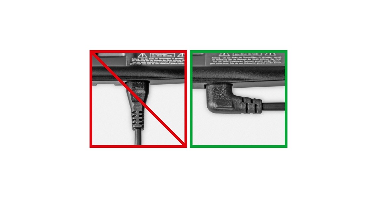 Kaltgerätekabel mit um 90° abgewinkelten Steckern zum Anschluss von Geräten mit 2-Pin-Doppelnut-Buchse an das Stromnetz (Eurostecker). H03VVH2-F 2x0.75mm²,2,5A/250VArt.-Nr.: 1144177