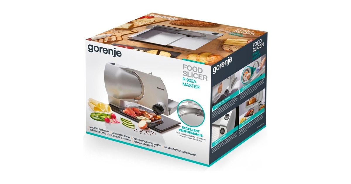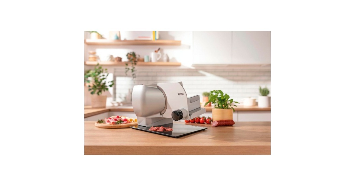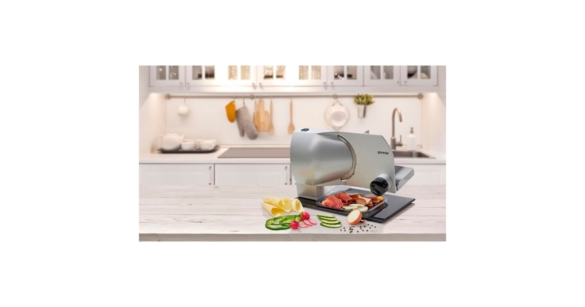 Der Gorenje Allesschneider R902A ermöglicht, durch den Kauf größerer Stücke oder in größeren Mengen bares Geld zu sparen und immer perfekt geschnittenen Käse, Fleischwaren, Brot, Gemüse oder Obst zu servieren. Auch Frischfleisch kann in größeren Stücken gekauft und in der gewünschten Dicke selbst zu Steaks geschnitten werden. Das hochwertige 2-in-1 Edelstahlmesser mit Wellenschliff, hergestellt in Solingen, ist so konzipiert, dass es für alle Arten von Lebensmitteln geeignet ist, für rohes Fleisch, getrocknetes Fleisch, Hart- oder Weichkäse, Gemüse und verschiedene Brotsorten. Per Drehknopf lässt sich die Scheibendicke zwischen 0 und 15 Millimetern einstellen. Im unteren Einstellbereich kann sehr fein eingestellt werden (z.B. für Salami, Schinken). Die geneigte Position des Schlittens vereinfacht das Schneiden. Der Schlitten und der Restehalter sind spülmaschinenfest. Der Allesschneider R902A verfügt über ein Sicherheitssystem für einfaches und sicheres Schneiden. Um es zu bedienen, betätigt man zuerst die Sicherheitstaste und dann die Taste "Ein". Wenn das Gerät nicht verwendet wird, dreht man den Einstellknopf für die Dicke auf die sichere Position 0 und verriegelt den Schlitten. Der Allesschneider ist völlig wartungsfrei.Art.-Nr.: 100044782